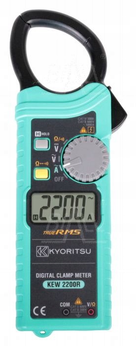 KEW2200R — это клещи переменного тока до 1000 А, измеряющие истинное среднеквадратичное значение сигнала TrueRMS. Максимальное разрешение измерения тока составляет 0,01А.