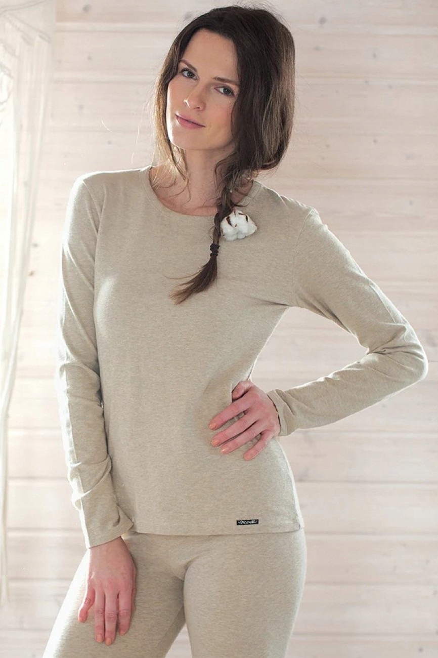 Теплая женская футболка, мягкий и приятный на ощупь трикотаж, драпируется с обеих сторон, длинные рукава идеально прилегают к телу.