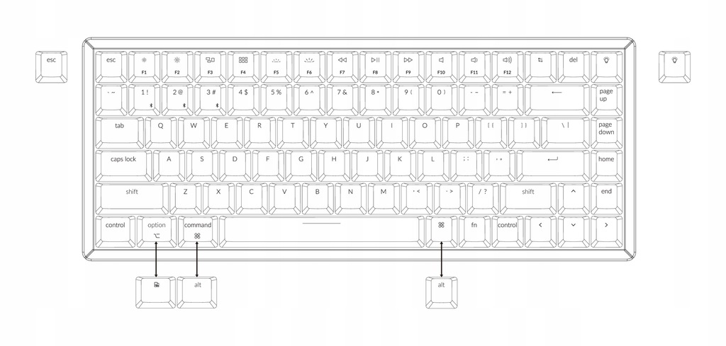 Клавиатура с уникальным расположением клавиш была разработана специально для пользователей Mac. K2 имеет все необходимые функциональные клавиши Mac и совместим с Windows. Просто подключите и работайте, дополнительный драйвер не требуется. В комплект входят дополнительные ключи для операционных систем Windows и Mac.