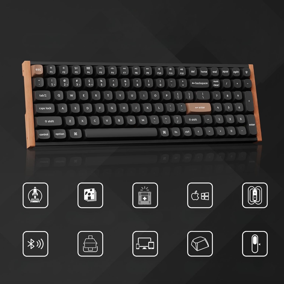 Полностью настраиваемая беспроводная клавиатура с 96% системой с магнитными переключателями - прорыв в технологии коммутатора, который вместо физических контактов использует магнитные датчики для измерения глубины активации, обеспечивая полное управление реакцией каждого переключателя.