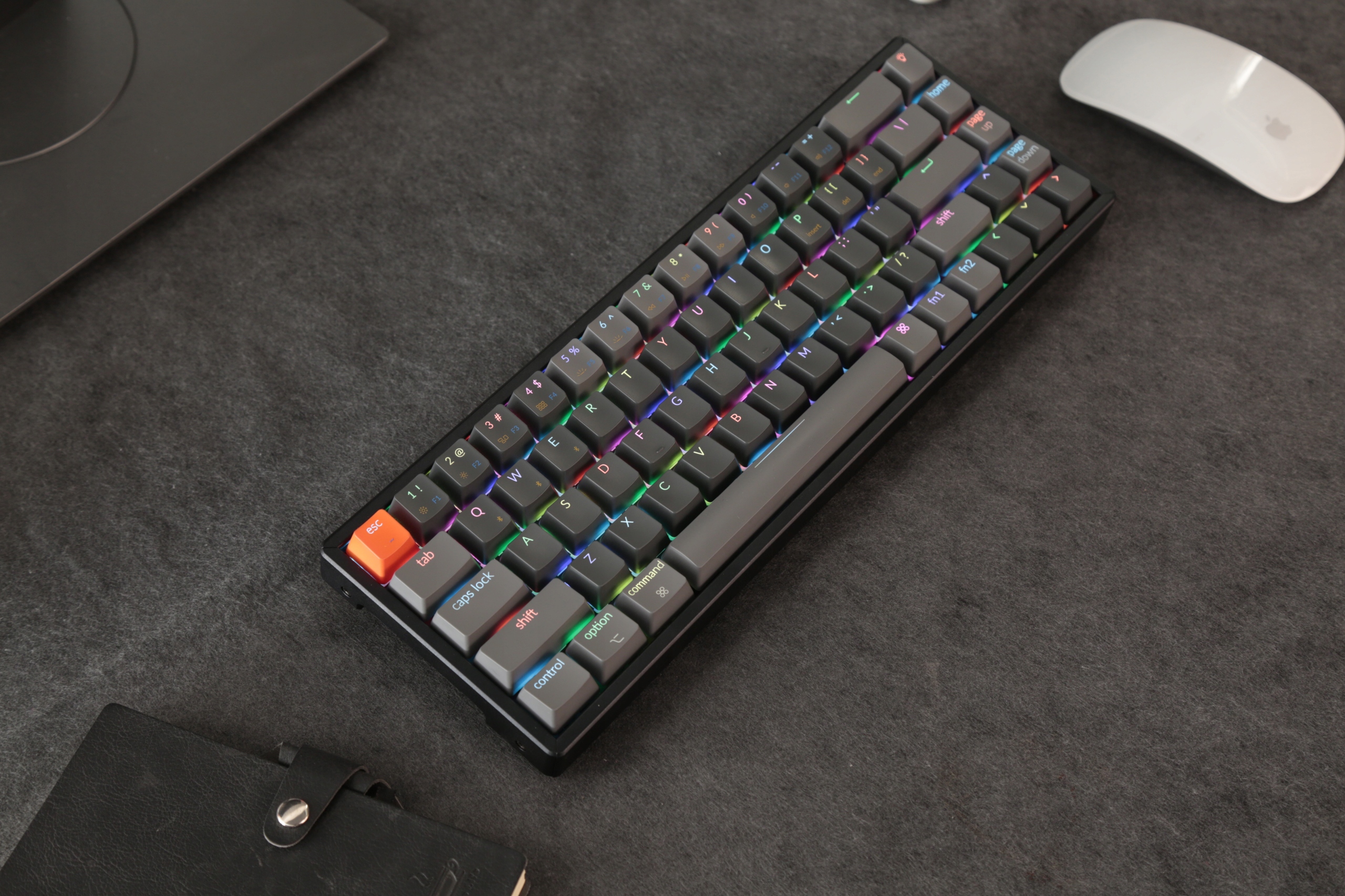 Инновационная компактная беспроводная механическая клавиатура с RGB-подсветкой, предназначенная для компьютеров Mac и Windows. K6 очень компактен и оснащен специальными клавишами со стрелками, двумя клавишами Fn и удобно расположенной правой клавишей Shift, что обеспечивает более легкий доступ к мыши для повышения эффективности.