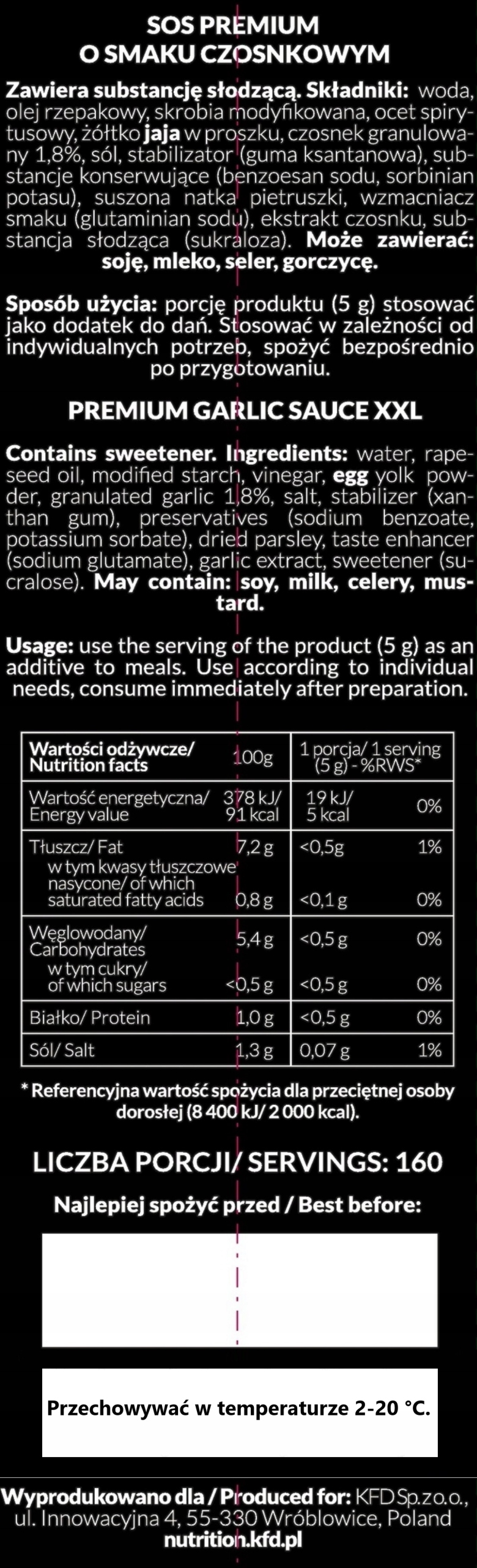 KFD Premium XXL 800 г соуса (толстый соус) Вкус: чеснок