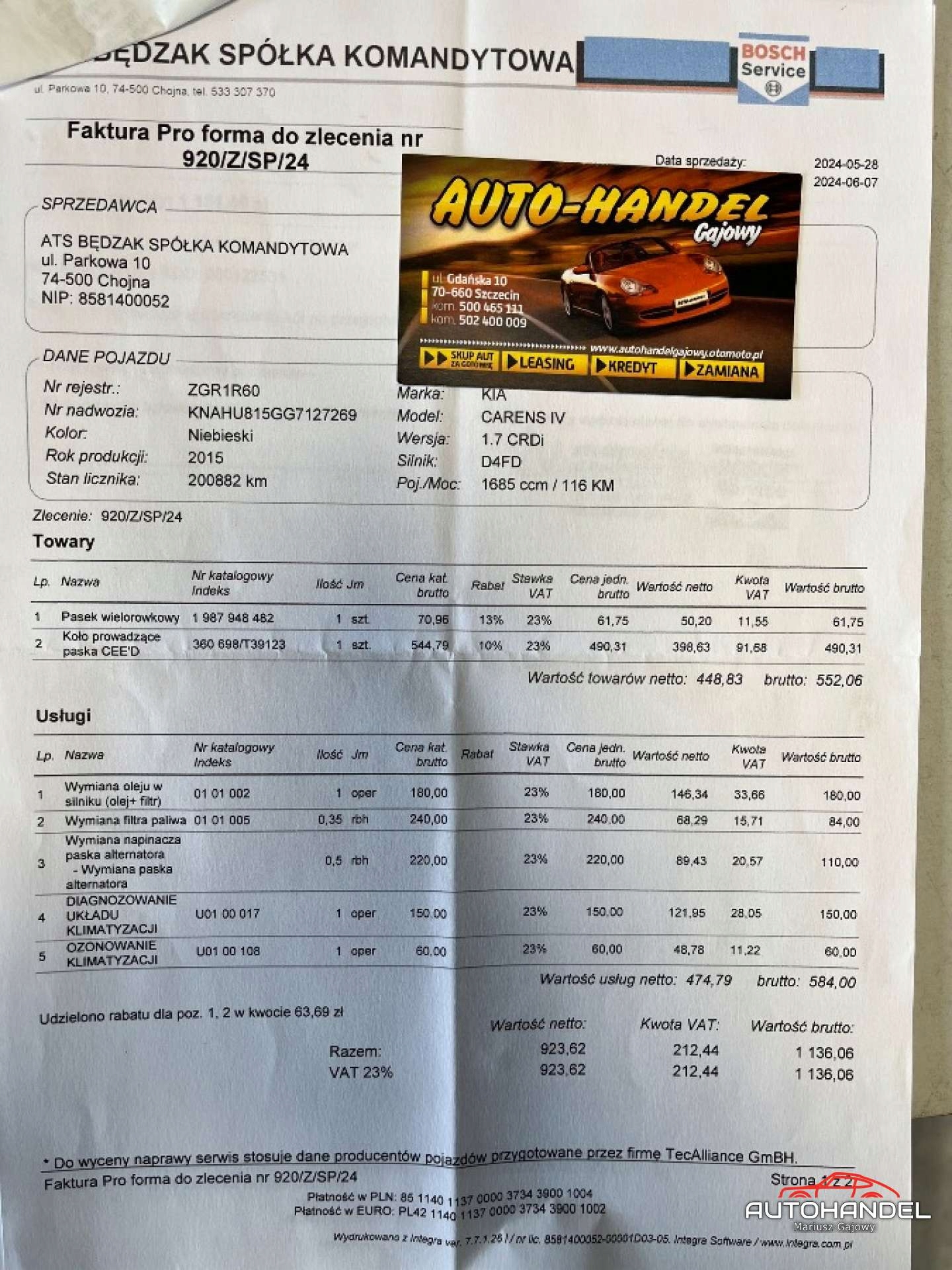 Оплачивая «Kia Carens 1,7 141ps, автоматическое, максимальное оборудование, обслуживаемое», вы можете быть уверены, что данное изделие из каталога «IV (2013-)» будет доставлено из Польши и проверено на целостность. В цене товара, указанной на сайте, учтена доставка из Польши. Внимание!!! Товары для Евросоюза, согласно законодательству стран Евросоюза, могут отличаться упаковкой или наполнением.