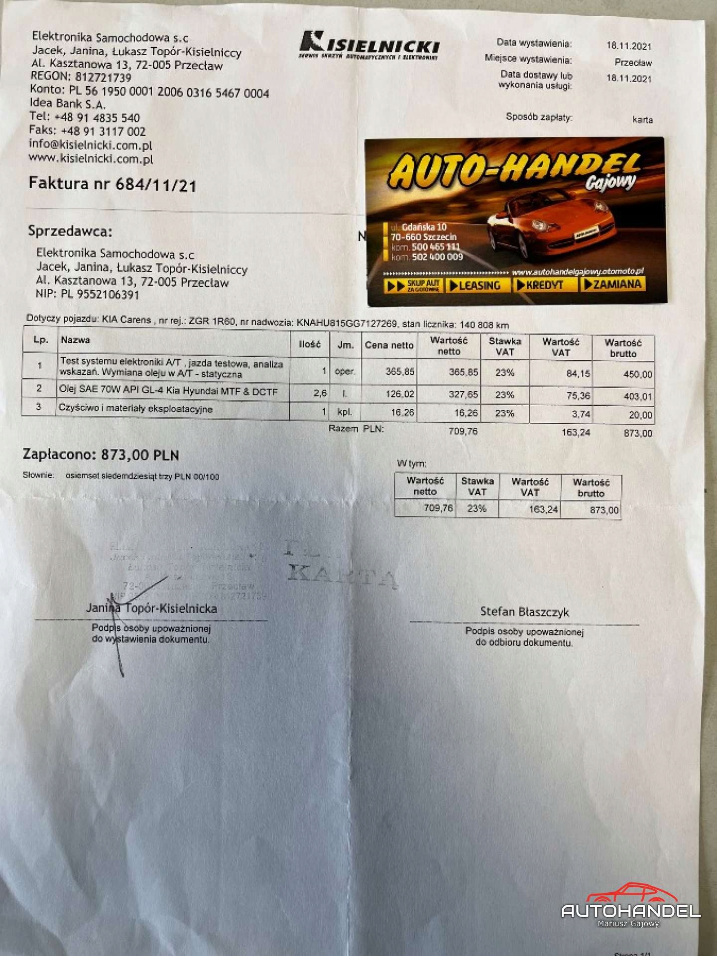 Kia Carens 1,7 141ps, автоматическое, максимальное оборудование, обслуживаемое