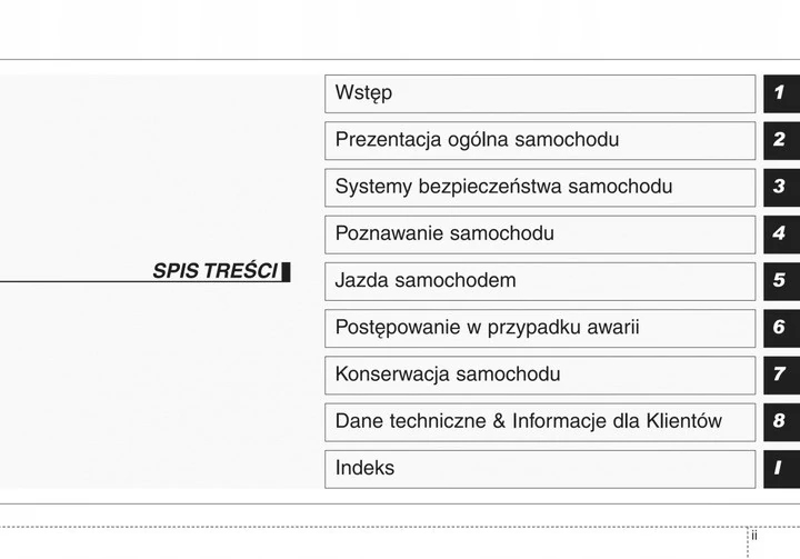 Руководство по эксплуатации Kia содержит все версии оборудования и полезную информацию о том, как эффективно и безопасно использовать автомобиль, например: - указатели поворота, контрольные лампы открытия и закрытия - освещение и обзорность, сиденья, отсеки для хранения вещей, отопление, вентиляция, кондиционирование воздуха - советы по вождению, эксплуатации, обслуживанию автомобиля - уровни жидкостей, проверка и доливка, аварийные операции, замена колес, предохранителей, замена лампочек - технические данные... и многое другое, дающее путешественникам ощущение безопасности и комфорта. Польское законодательство обязывает продавца приложить к автомобилю руководство по эксплуатации на польском языке. Руководство пользователя автомобиля новое, на польском языке.