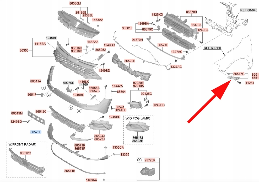 KIA SPORTAGE V 2021- КРЕПЛЕНИЕ ПЕРЕДНЕГО БАМПЕРА ЛЕВАЯ OE 86551R2000
