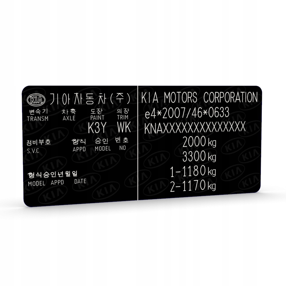 KIA TABLICZKA NAKLEJKA ZNAMIONOWA ZASTĘPCZA VIN