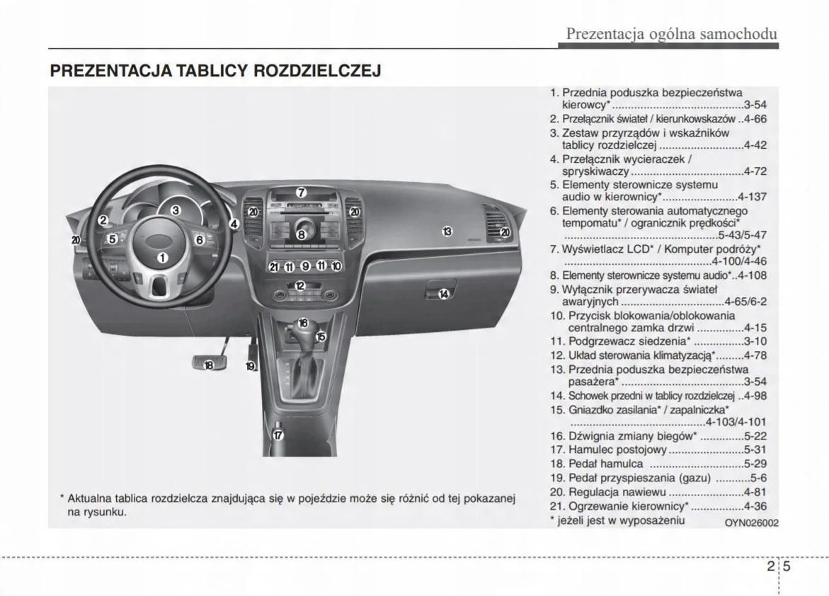 Руководство по эксплуатации Kia содержит все версии оборудования и полезную информацию о том, как эффективно и безопасно использовать автомобиль, например: - индикаторы, контрольные лампы, открывание и закрывание - освещение и обзорность, сиденья, отсеки для хранения вещей, отопление, вентиляция, кондиционер. - советы по вождению, эксплуатации, обслуживанию автомобиля - уровни жидкостей, проверка и доливка, аварийные операции, замена колес, предохранителей, замена лампочек - технические данные... и многое другое, дающее путешественникам ощущение безопасности и комфорта. Польское законодательство обязывает продавца приложить к автомобилю руководство по эксплуатации на польском языке. Руководство пользователя автомобиля новое, на польском языке.