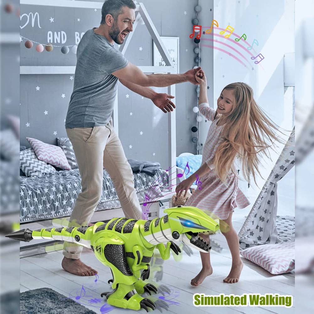 Динозавр также может ходить, танцевать и двигаться в разных направлениях с помощью пульта дистанционного управления, что доставляет массу удовольствия и развлечение для детей.