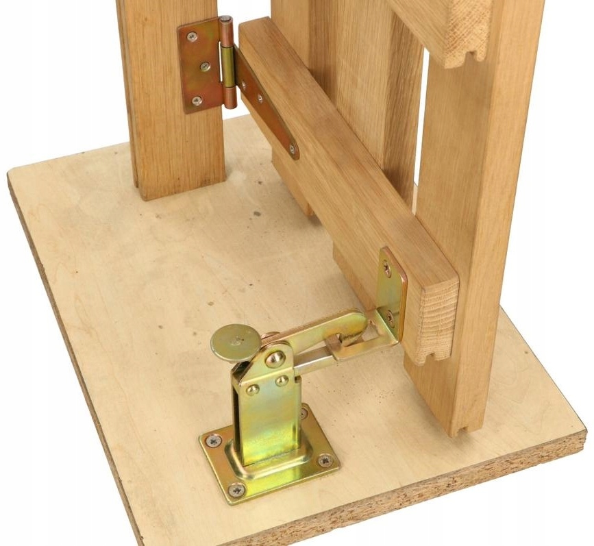 Надежное изделие ручной работы, новинка на рынке. Работает по принципу защелки. При открытии двери замок срабатывает автоматически – захлопывается. Чтобы открыть, просто нажмите ногой на ножку.