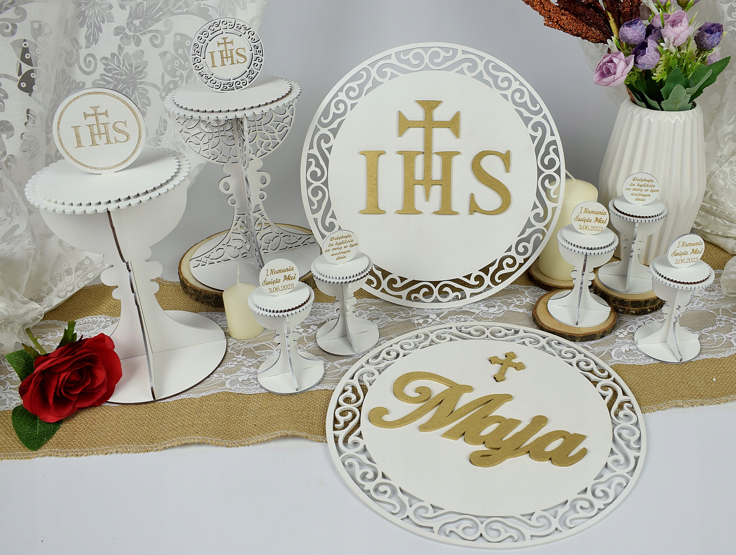 Kielich dekoracja na Komunię hostia IHS 30cm
