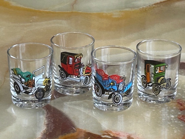 KIELISZKI 4 SZT AUTOMOBILE STARE AUTA RENAULT PEUGEOT