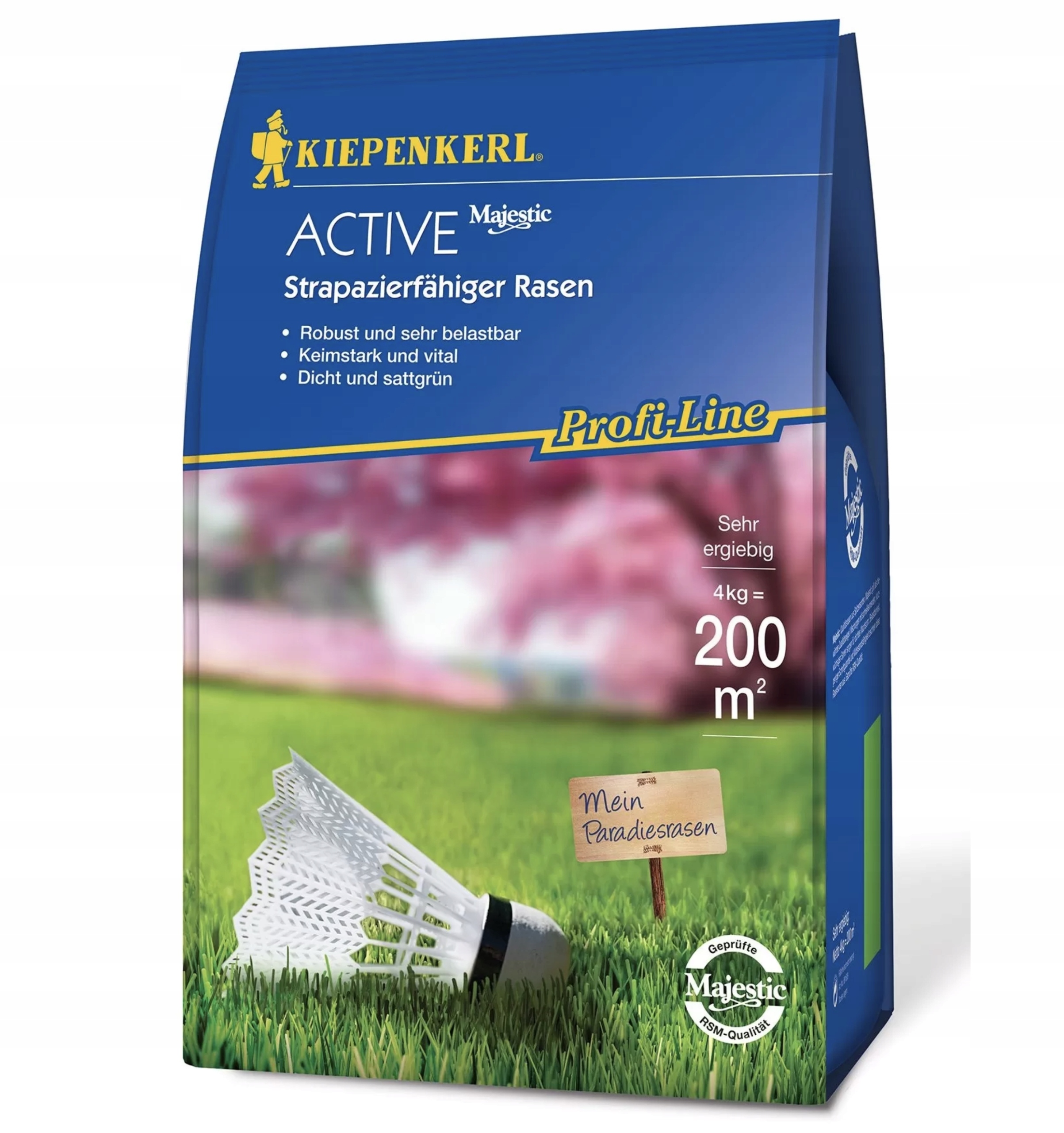 «Активная» газон очень универсален и устойчив к использованию. Также предназначен для мест для занятий спортом. Эта трава очень долговечная и устойчивая. Благодаря большому количеству семян на м² мы получаем очень плотный газон с красивым цветом.