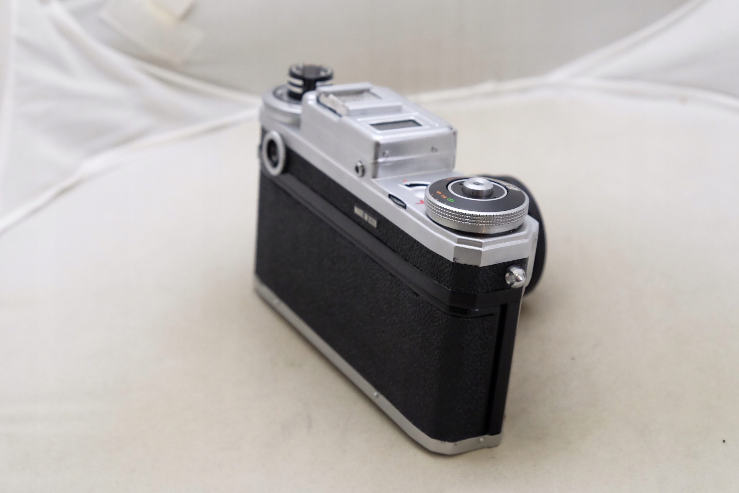 Камера не имеет царапин или ссад на корпусе, дальномер, затвор и измерение света.