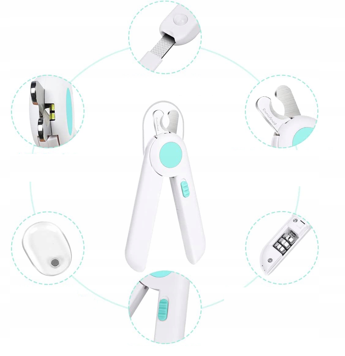🐈 Набор кусачек для ногтей 2 в 1: Этот набор с подсветкой сочетает в себе кусачки для ногтей и точилку для когтей. Подходит для мелких и средних животных. Внизу также есть скрытая пилочка для ногтей. Очень длительное время автономной работы, заменяются тремя батарейками LR44 (входят в комплект). В комплект входит прозрачная защита от брызг.