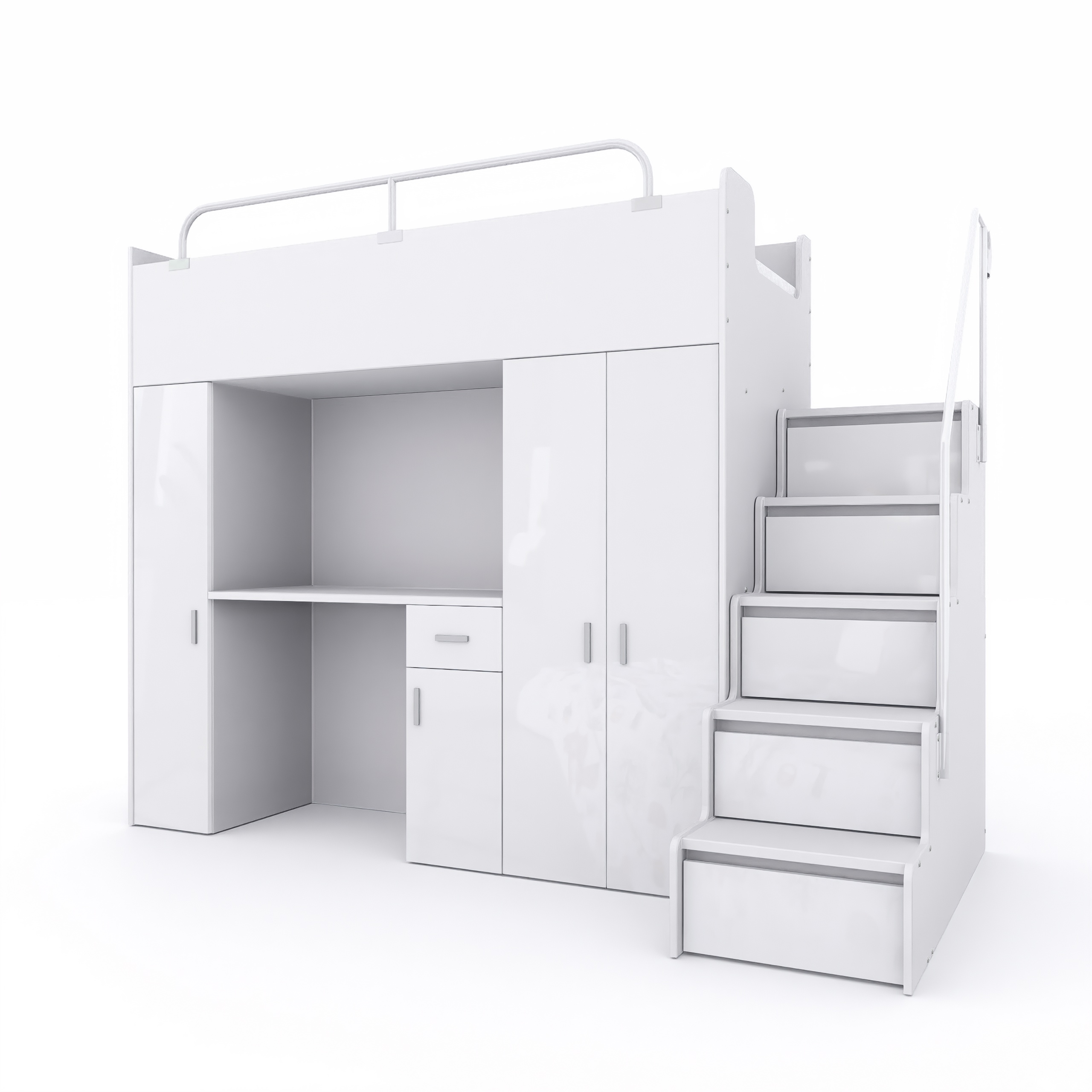 Kiki 5 Max (90x200 см) двухъярусная кровать с столом и лестницей - белый блеск