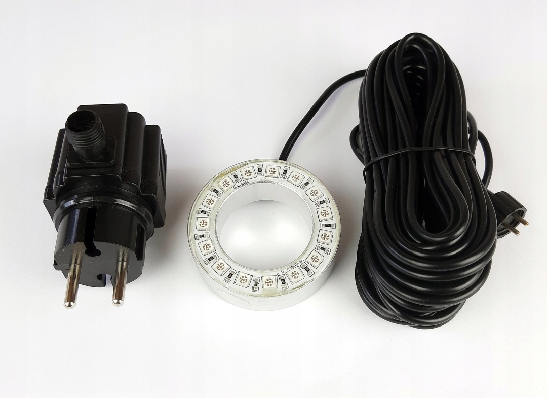 Светодиодное кольцо 15 Led питается от безопасного напряжения 12 В, безвредного для людей и животных. Таким образом, он соответствует европейским требованиям безопасности для подводных установок. Длинный 10-метровый кабель позволяет свободно разместить даже несколько светильников из одного места на большой площади. В комплект входит трансформатор со степенью защиты IP 44. Поэтому не забудьте правильно закрепить подключение к сети.