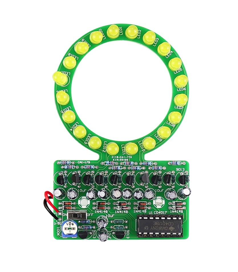 Зеленые светодиоды h2> Цвет на фотографии после включения h2> Система освещена в цветных светодиодах h2> . 2xaa (не в наборе) p> Свет циркулирует в круге, h1> резистор регулирует скорость.