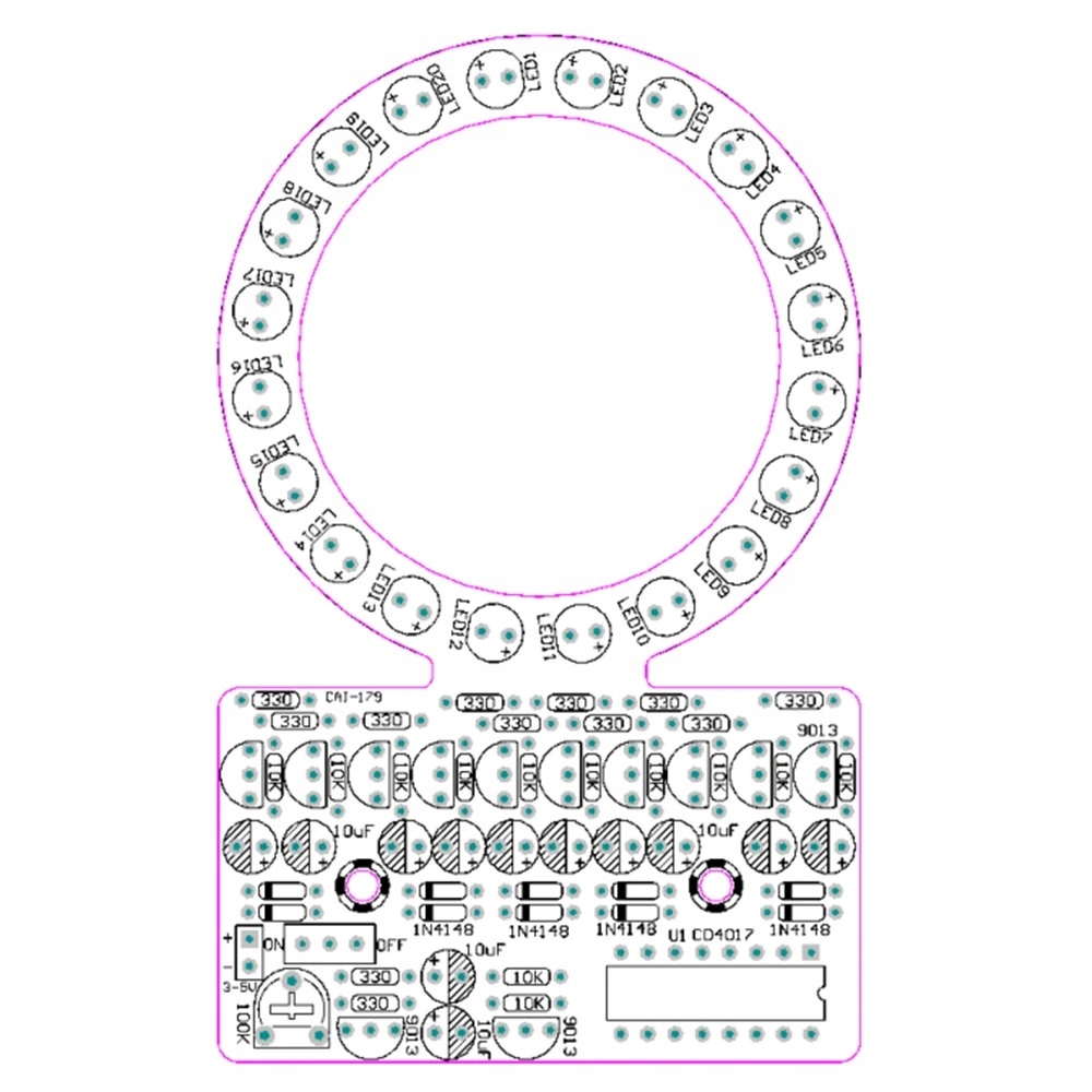 Свет циркулирует в круге, h1> резистор регулирует скорость.