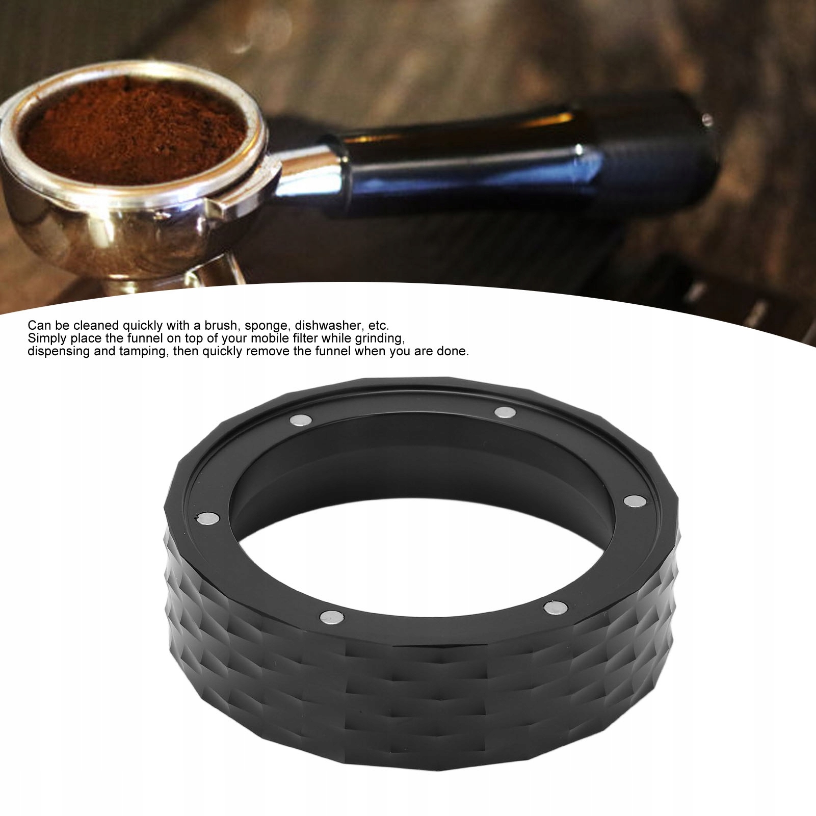 2. Высокая стабильность: воронка для раздачи кофе обладает более высокой стабильностью, чем другие немагнитные кольца для раздачи, ее можно устойчиво размещать на кофемашине, не снимая.