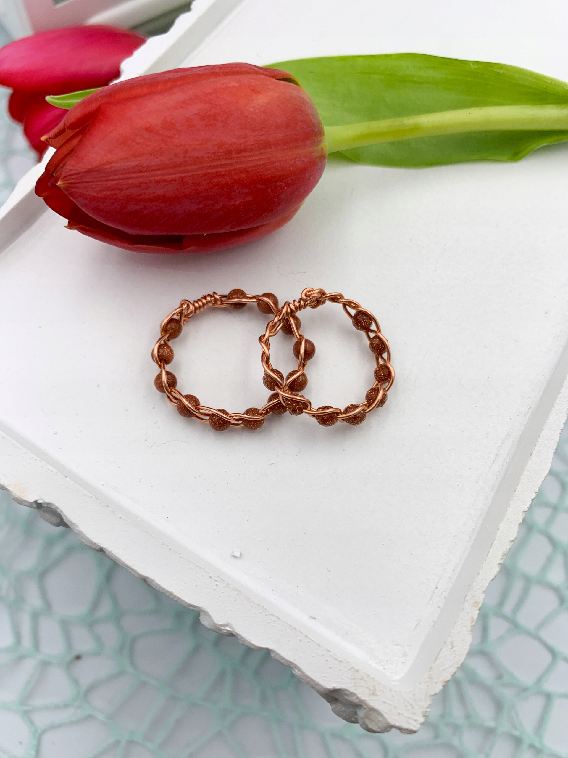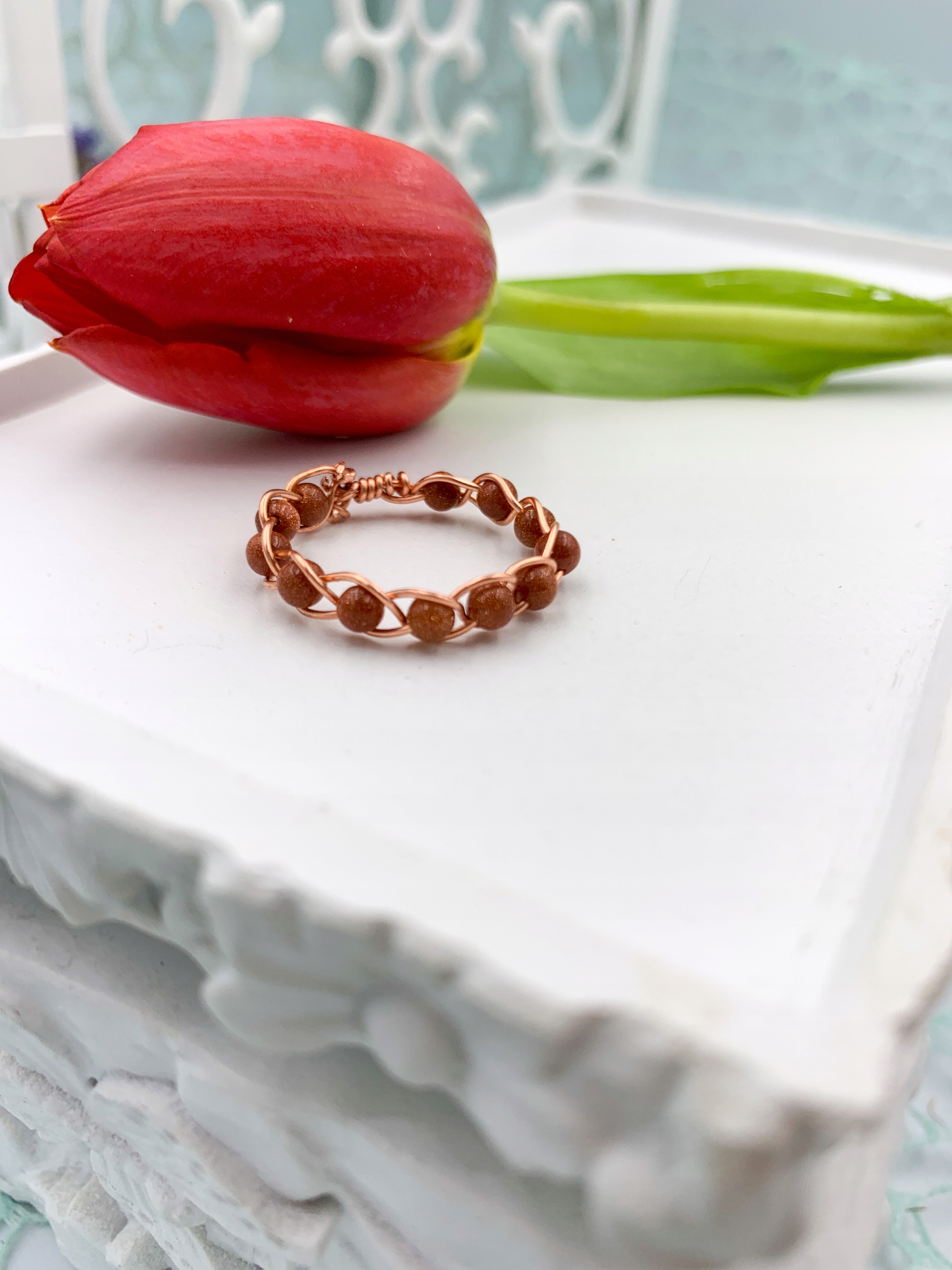 Кольцо ручной работы из медной проволоки и пустынного песчаника