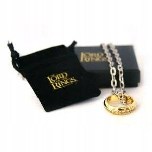 Замечательное позолоченное кольцо по мотивам трилогии Питера Джексона «Властелин колец» (2001–2003). Кольцо изготовлено из позолоченного металла. Он содержит цепочку длиной 60 см и упакован в коробку. Это лицензионная копия из фильма.
