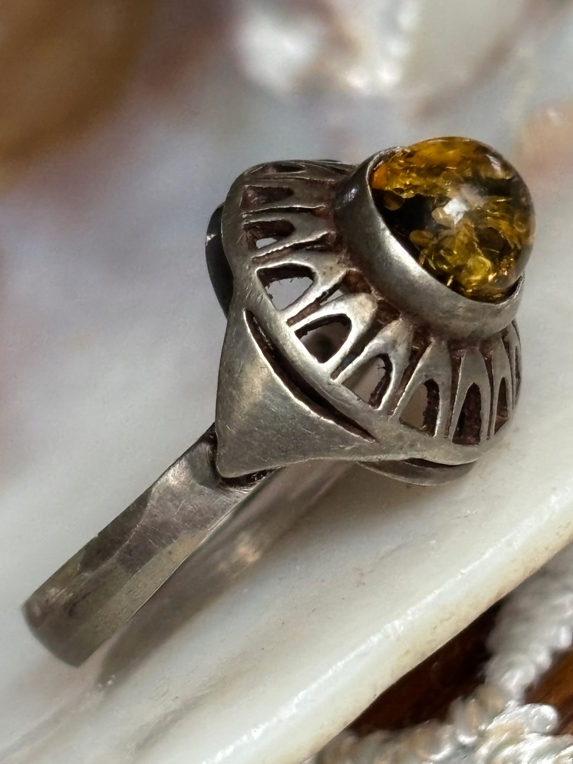 Кольцо Warmet Resovia, камень состаренное серебро, купол из янтаря, ПРЛ