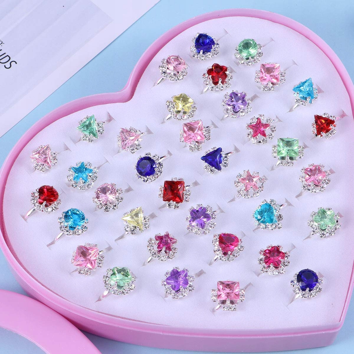 Прекрасная коллекция из 36 штук. колец - идеальный набор для каждой маленькой девочки. Эти игрушечные кольца очень красиво сделаны, сказочно красочные, похожи на кольца принцесс из сказок! :)