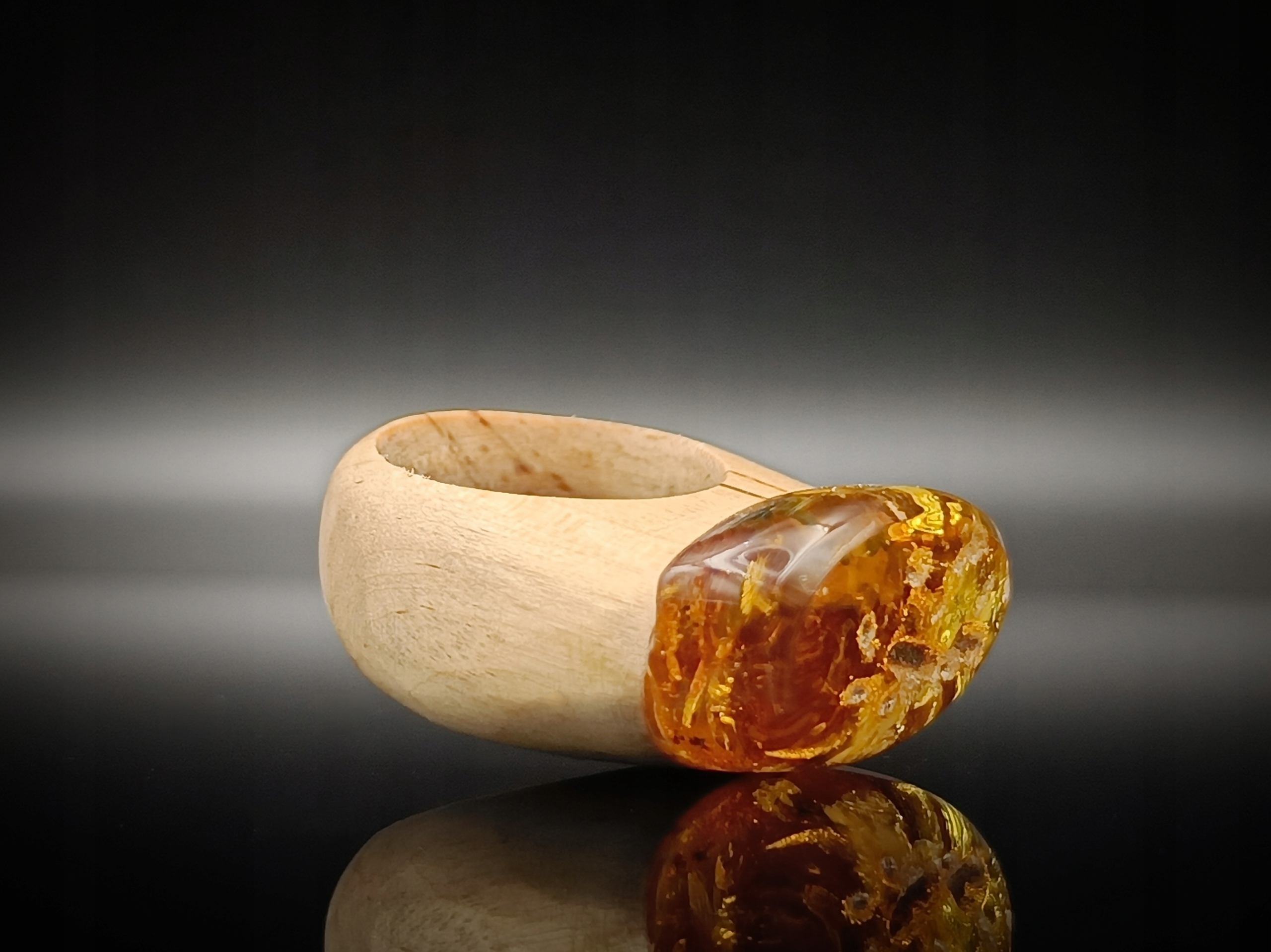 Кольцо. Натуральный балтийский янтарь и дерево. Уникальный.