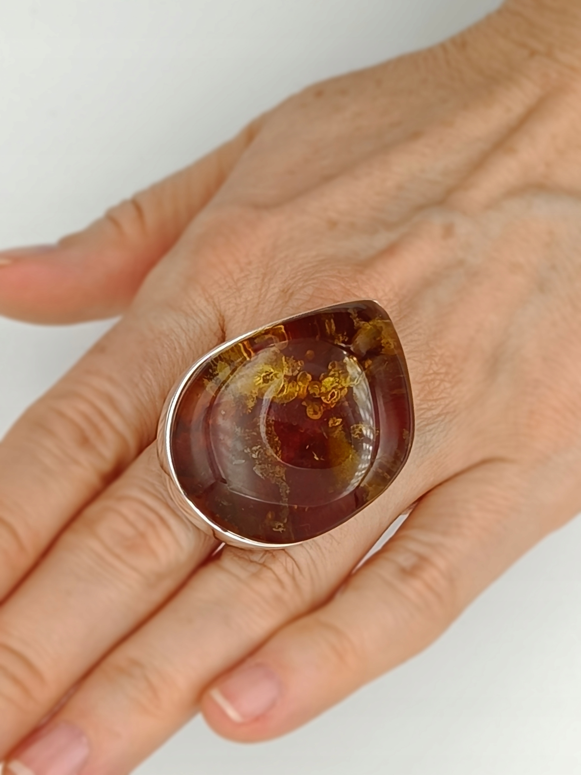 ***Кольцо из натурального балтийского янтаря и серебра 925 пробы.***