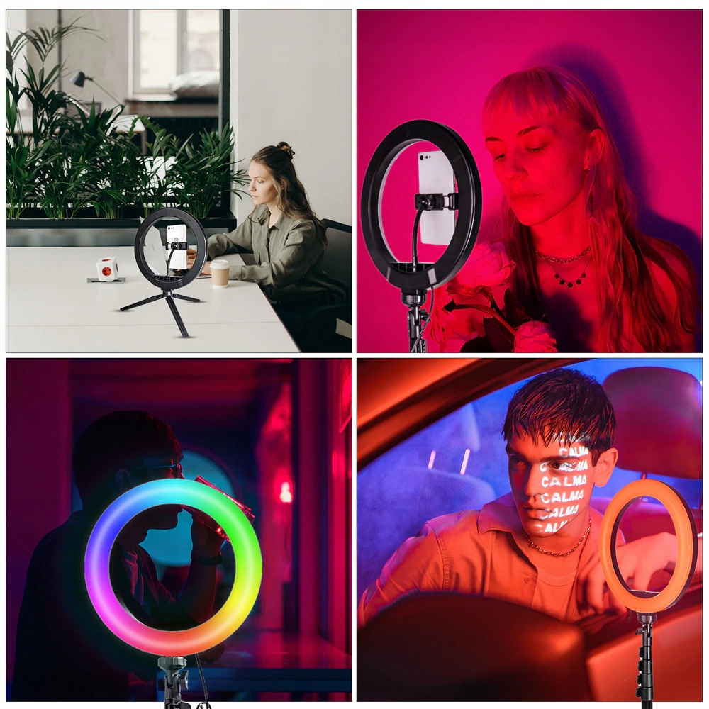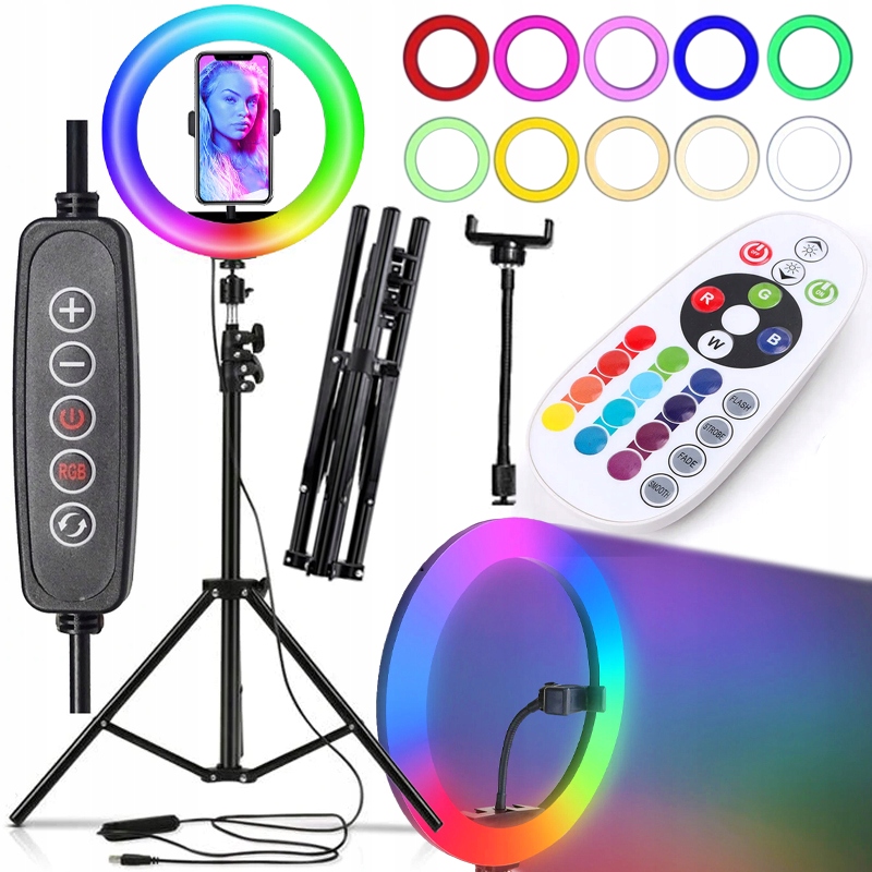 Сильное кольцо, набор для лабины для селфи, светодиодный штатив RGB + 2x пульт дистанционного управления
