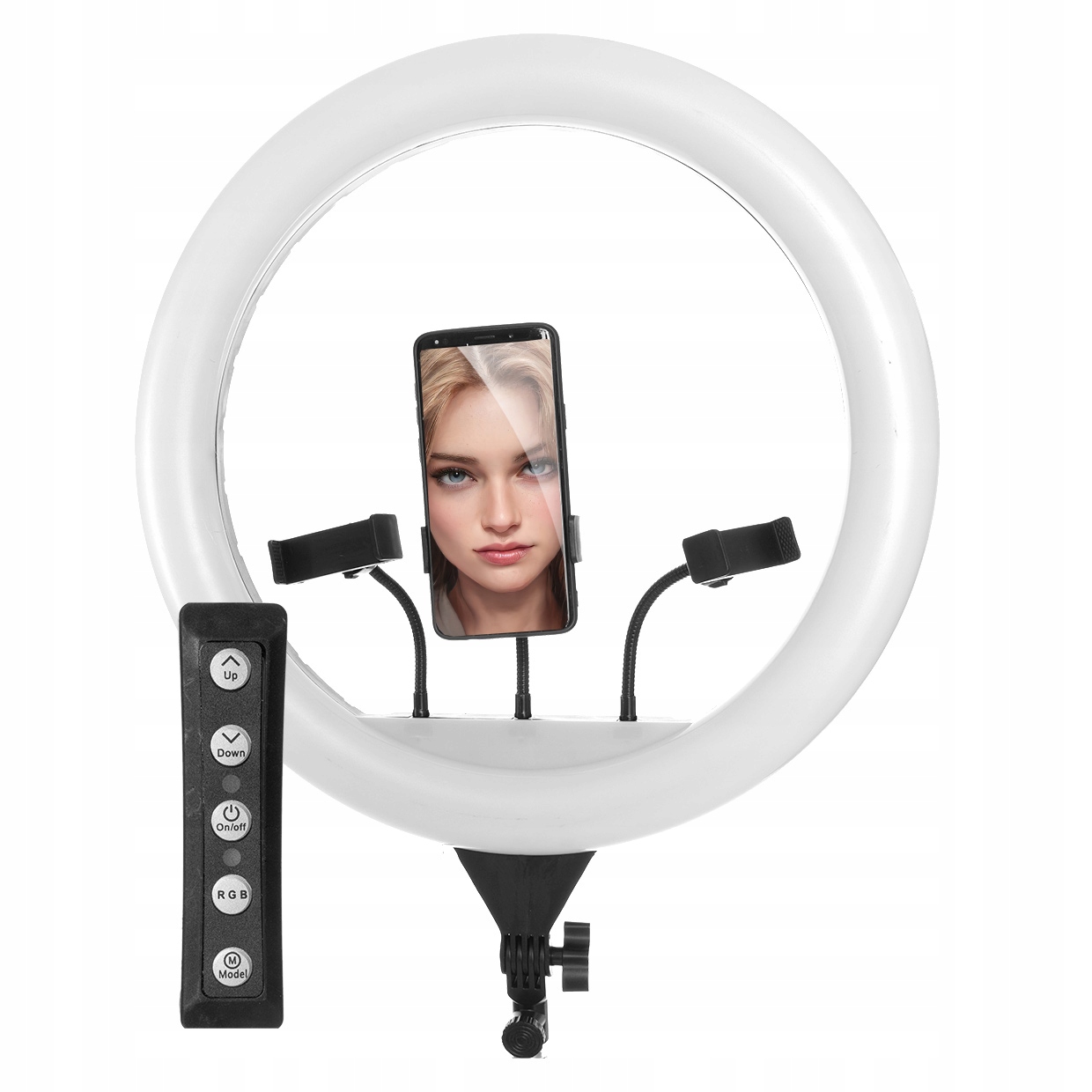 Получите идеальное сияние! С Ring Lamp Beauty 460 вы можете иметь естественное освещение в любое время и в любом месте. Вам больше не придется искать подходящее освещение, чтобы сделать идеальную фотографию или записать видео. Легко регулируйте яркость и цветовую температуру для достижения желаемого результата. Кроме того, для удобства вы получаете три держателя для смартфона и кабельный пульт дистанционного управления! Пришло время украсить вашу жизнь с помощью Ring Lamp Beauty 460!