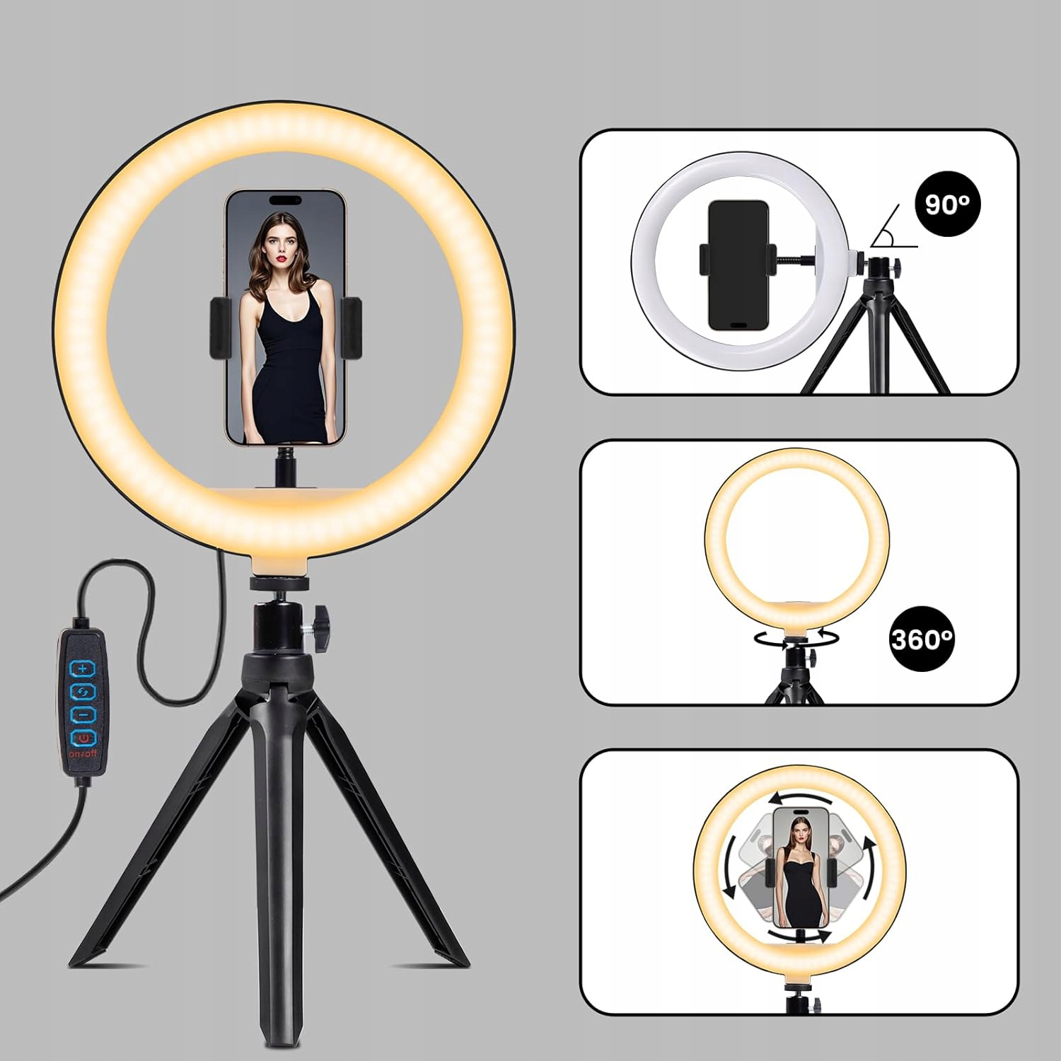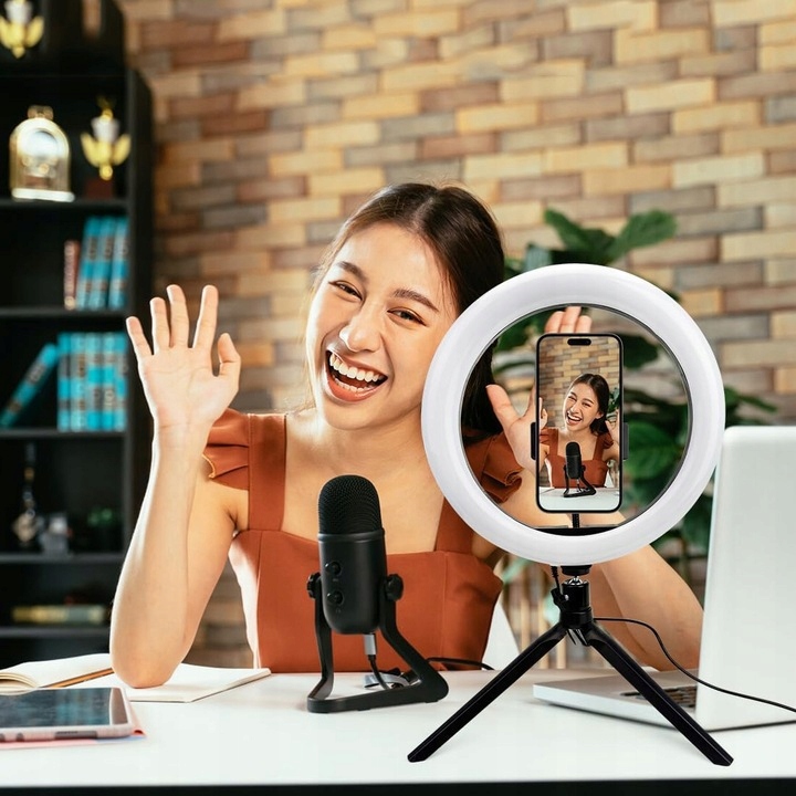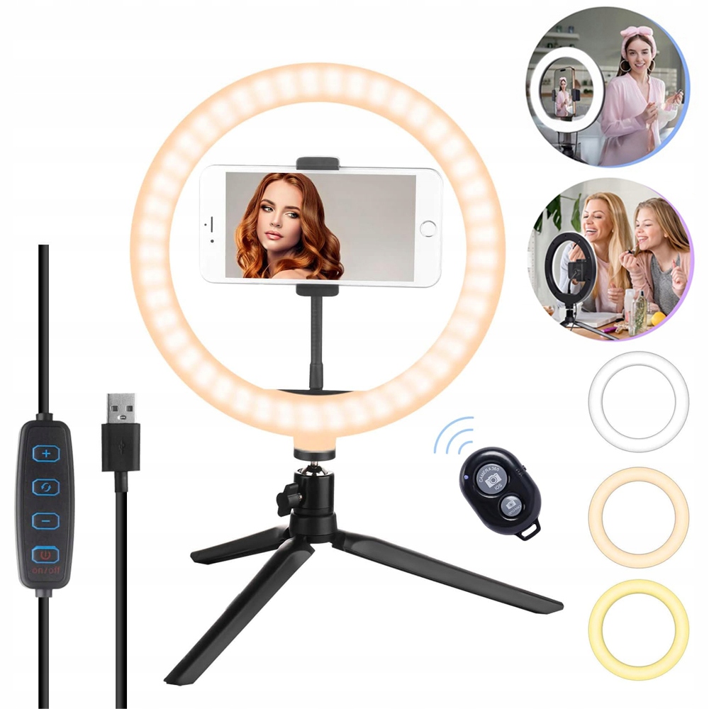 КОЛЬЦЕВАЯ ЛАМПА СО ШТАТИВОМ И ДЕРЖАТЕЛЕМ ДЛЯ ТЕЛЕФОНА, КОЛЬЦОВАЯ СВЕТИЛЬНИКА