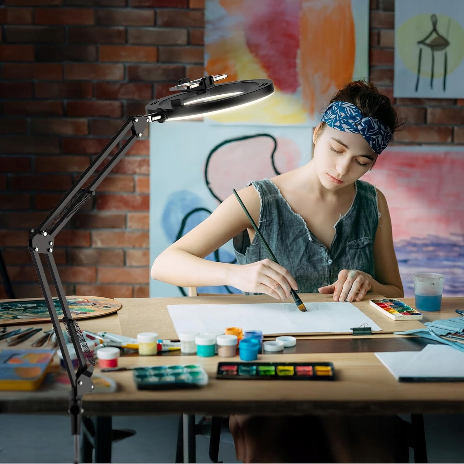 Кольцевой светильник с ручкой позволяет установить любой угол. Кольцевой светильник крепится к кронштейну лампы. Чтобы изменить угол, просто потяните держатель телефона вверх, расположив его под соответствующим углом и на соответствующем расстоянии. Изменение угла занимает всего 1 секунду. Лампа идеально подходит для фотографирования кулинарии, рисования, искусства, маникюра и поделок.