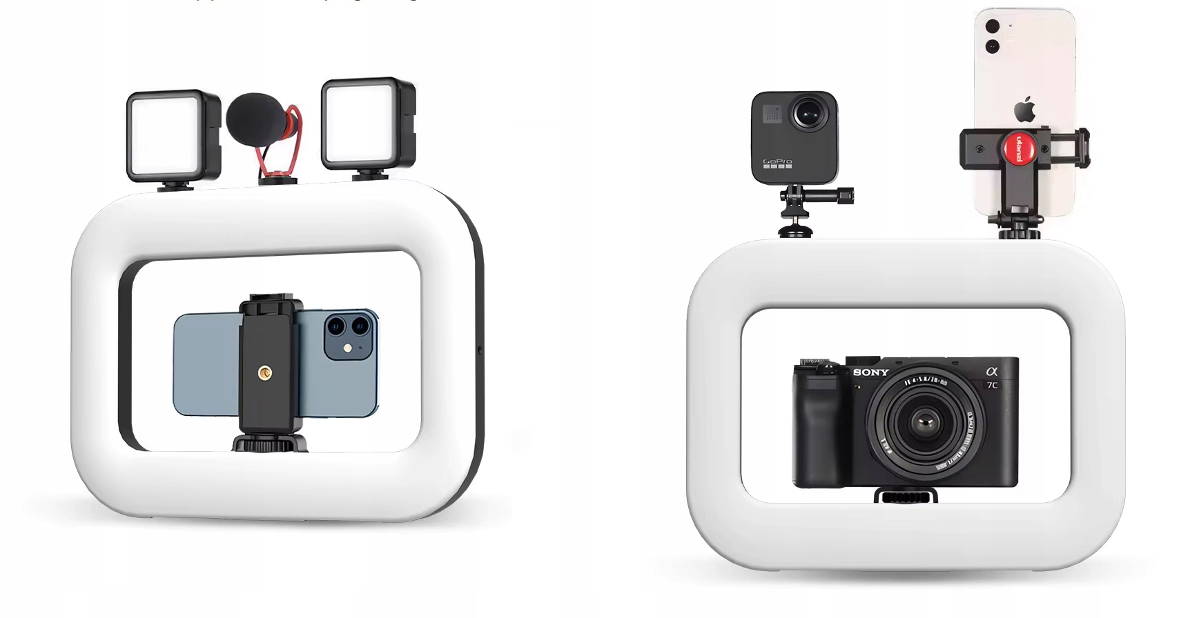 Благодаря беспроводной конструкции вы можете записывать где угодно, не прибегая к кабелям. Устойчивый держатель телефона и штатив гарантируют надежное крепление и идеальную посадку в рамке. Это полный набор, который придаст вашему контенту профессиональный вид и даст вам полный контроль над освещением.