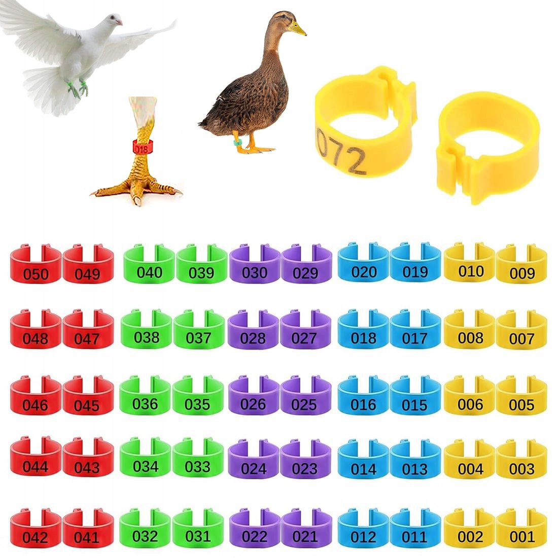 Птицеводческие кольца разноцветные пронумерованные зажимы 100 шт. 16 мм набор h1>