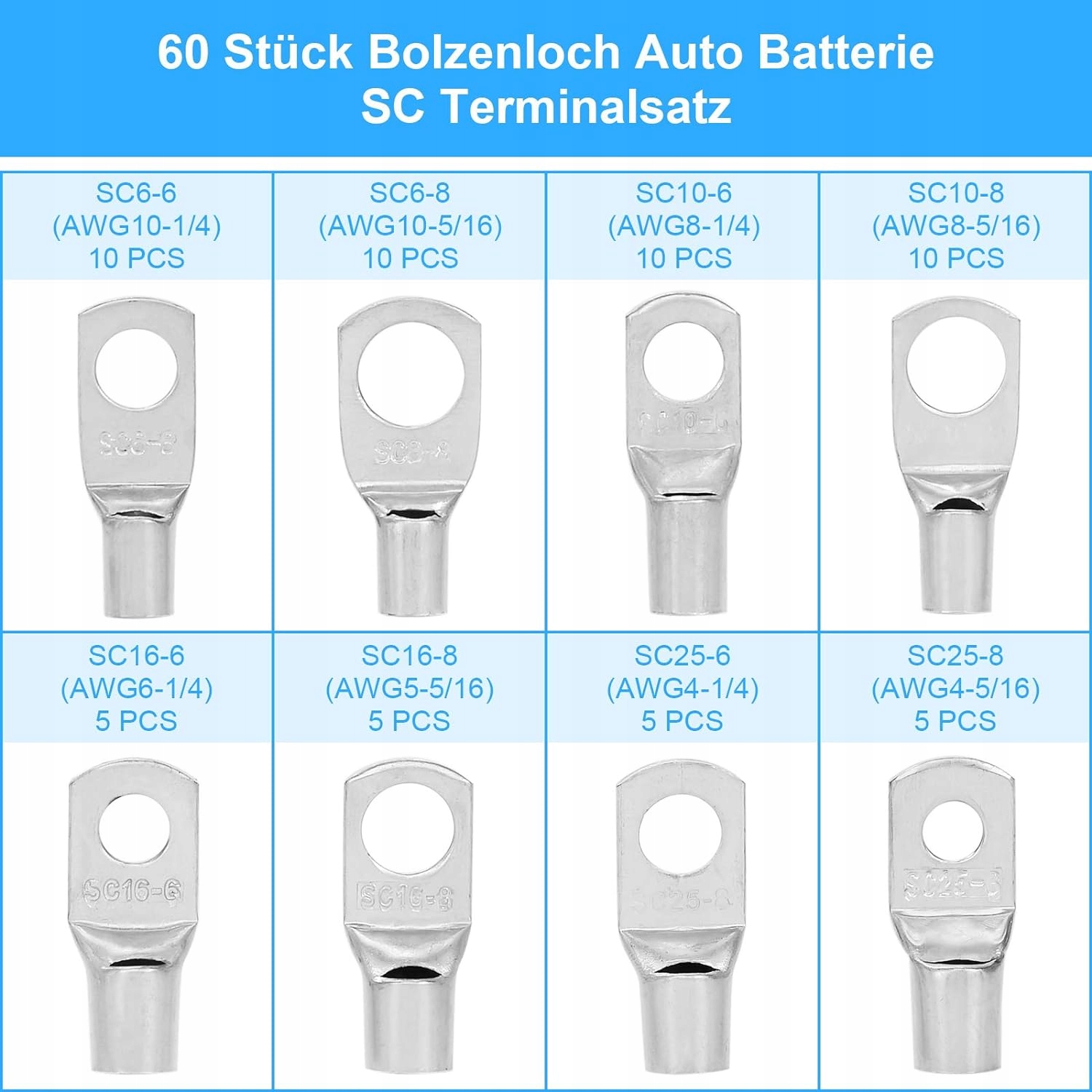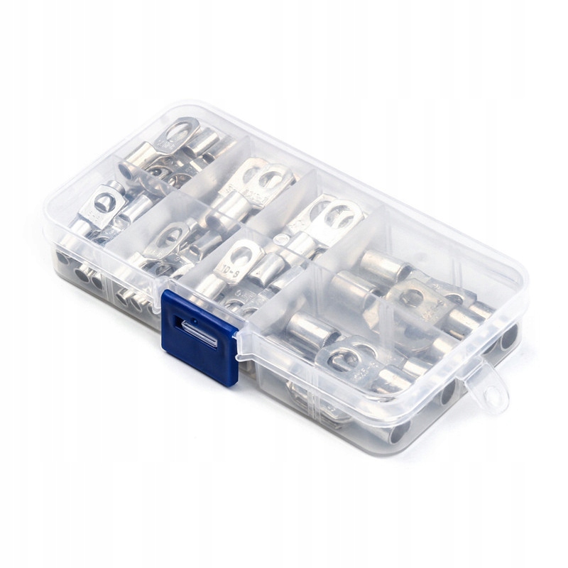 В комплект входит 60 штук кольцевых разъемов, изготовленных из высококачественной луженой меди, что обеспечивает максимальный ток и отличную проводимость. Разъемы имеют шайбы с закрытыми концами, что позволяет как обжимать, так и паять провода.