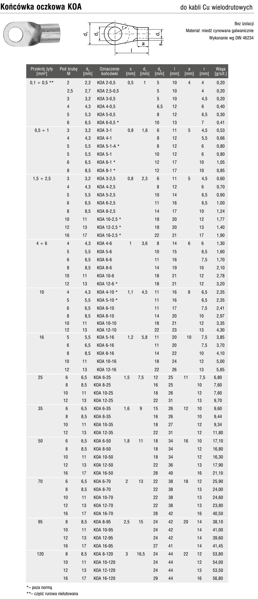 Кольцевой кабельный наконечник KOA 16 мм / M6 1 шт.