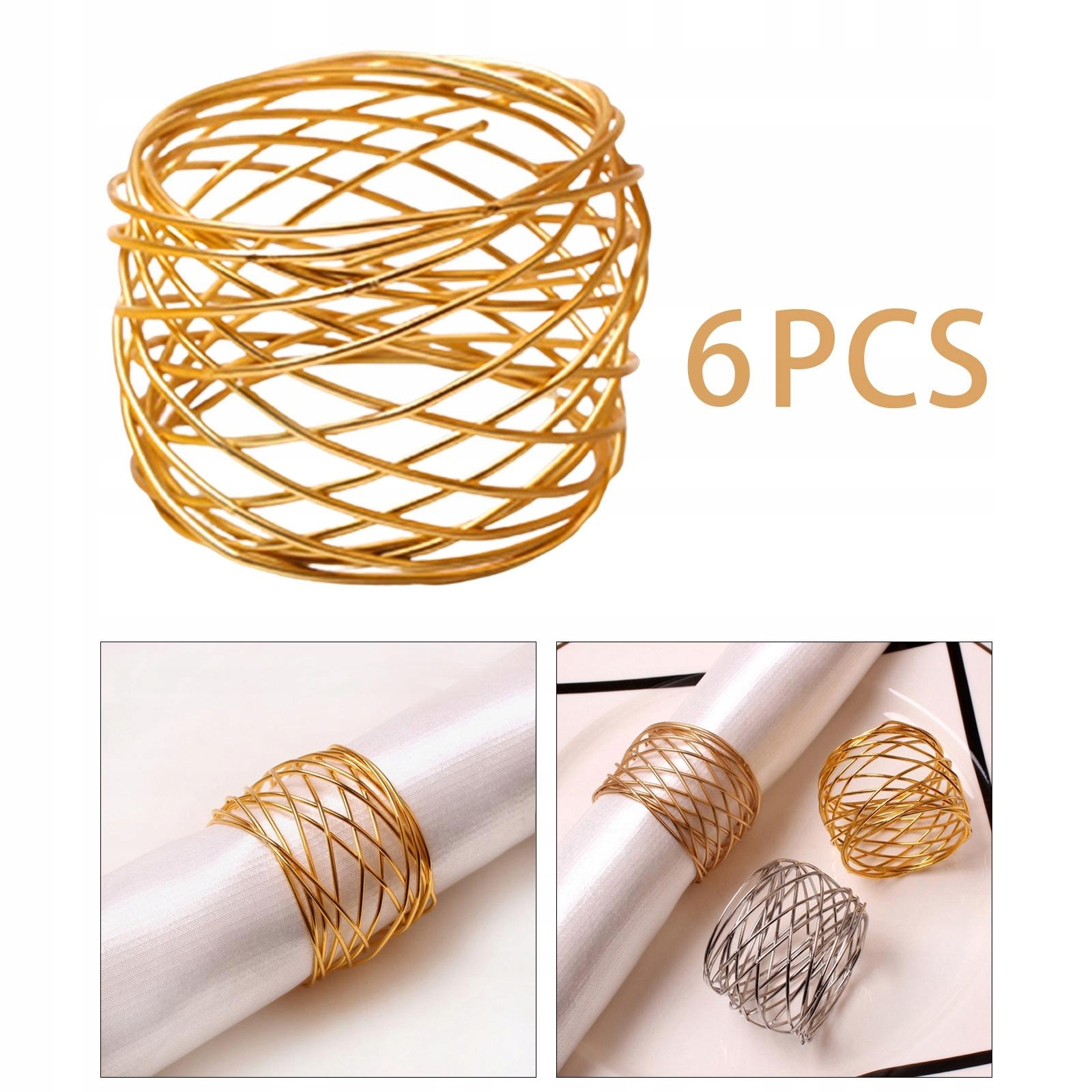 6x Элегантные кольца для салфеток Набор металлических застежек-сеточек для банкета, золото