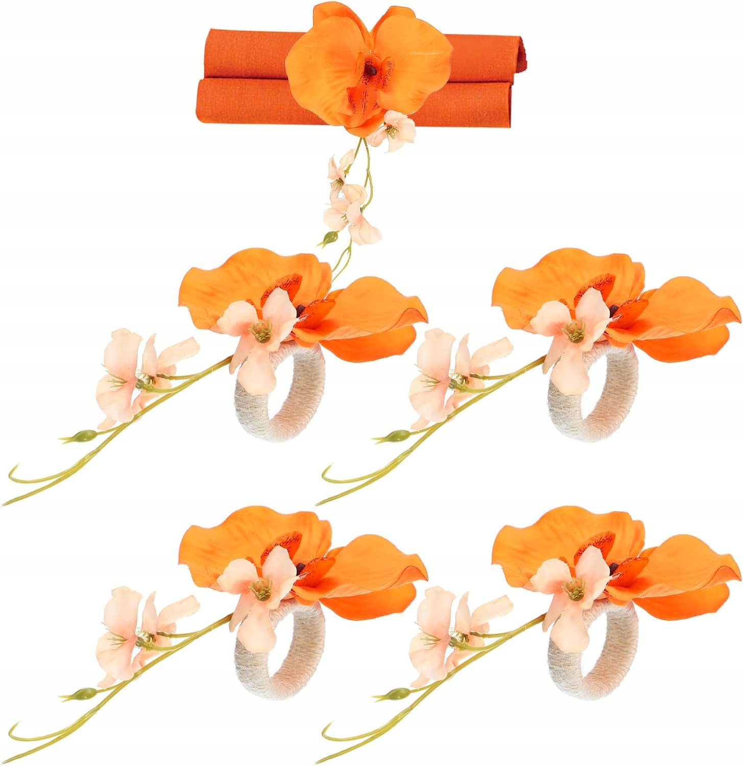 КОЛЬЦА ДЛЯ САЛФЕТОК РУЧНОЙ РАБОТЫ С ЦВЕТКОМ ОРХИДЕИ, 4 ШТ.