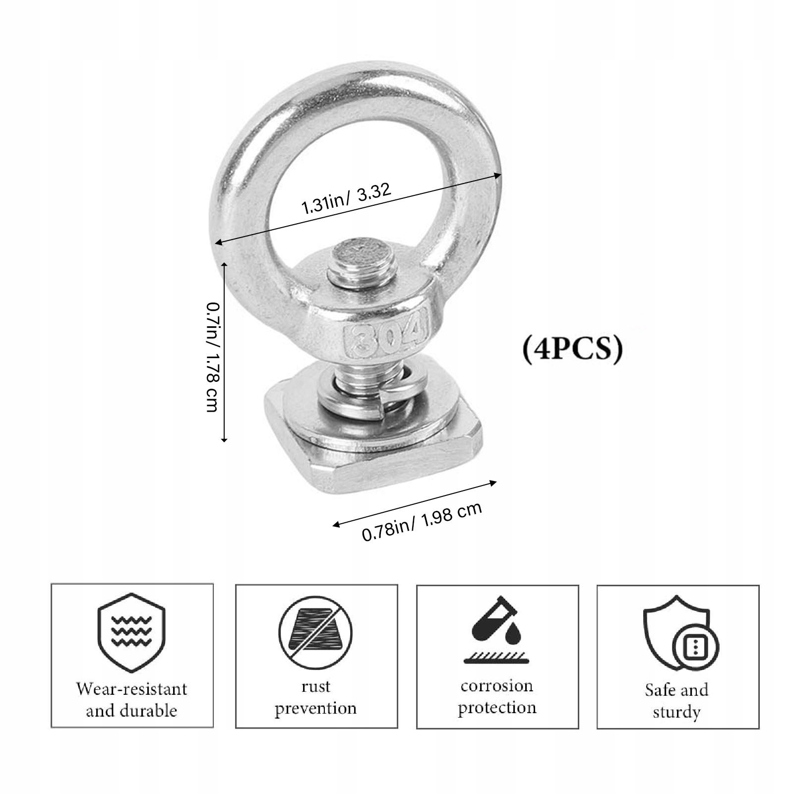 4 шт. Т-образный крепежный анкер M8, прочный болт из нержавеющей стали с Т-образным пазом, стяжные кольца для удержания банджи-шнура, веревочные крючки, серебро
