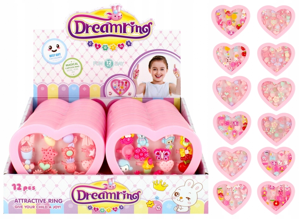 Преимущества товара: Набор из 12 колец MEGA CREATIVE – прекрасный подарок для каждой маленькой модницы Кольца универсальный размер, упаковка отличается кольцами. Кольца упакованы в коробочку в форме сердца. Кольца из пластика. Размеры изделия длина х высота х глубина см: 12х10х4. Вес изделия кг. 0,06 кг. Размеры упаковки: дисплей A&39;12: длина x высота x глубина. см 26х11х23. Вес упаковки - дисплей A&39;12 кг. 0,90 кг. Предназначено для детей от 3 лет.