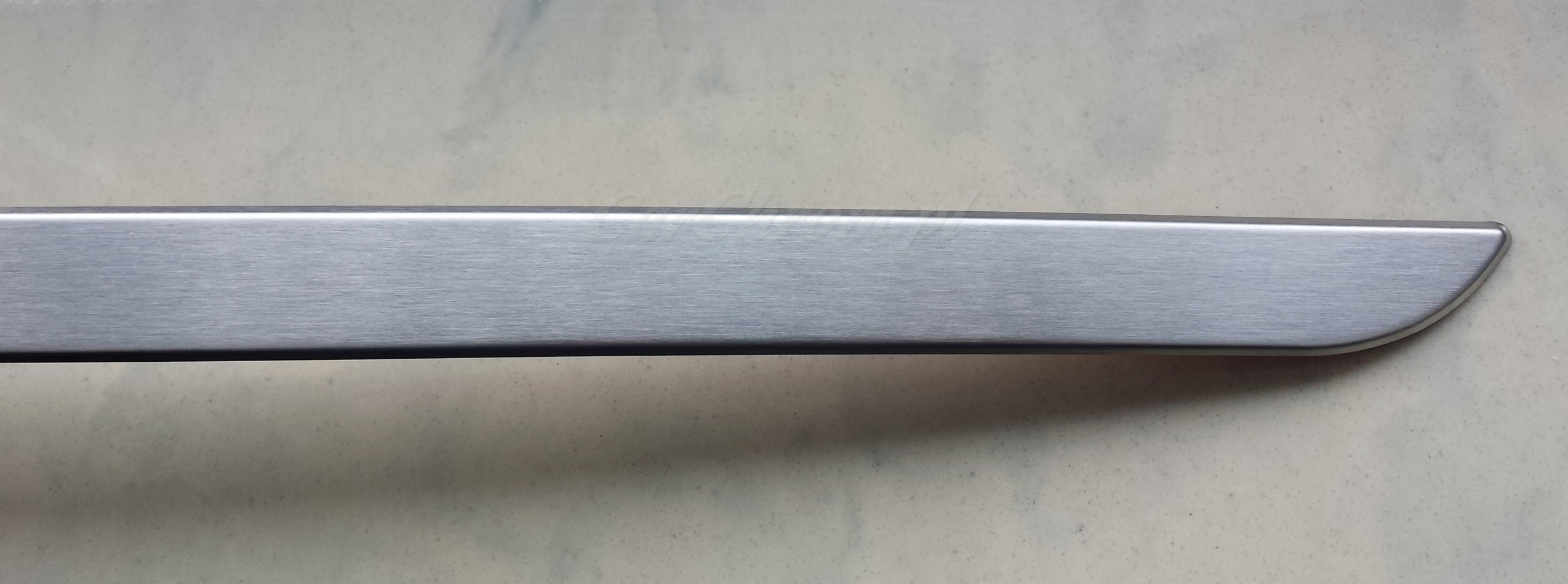 Полоска изготовлена из матовой нержавеющей стали (матовой), прессованной из матрицы (край вокруг полосы загнут).