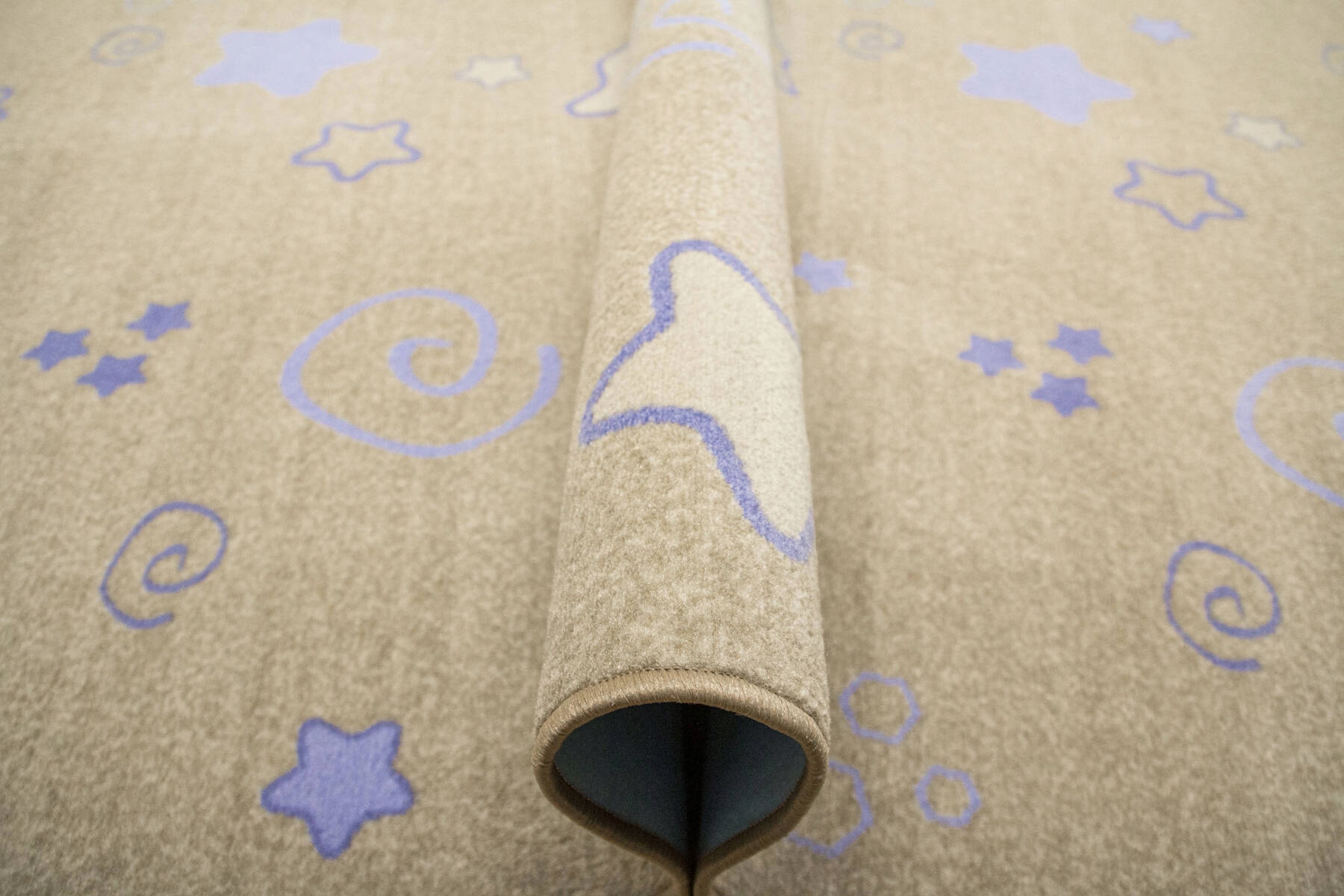 Детский коврик из бархатного ковра Stars пастельных тонов бежевого и голубого цветов на фетровой подложке.