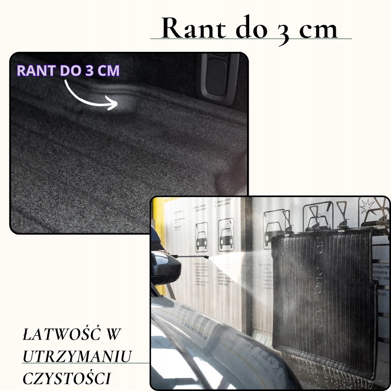 - Используется высокий край (до 3 см) и укрепление в чувствительных точках обеспечить защиту и очистку багажника.