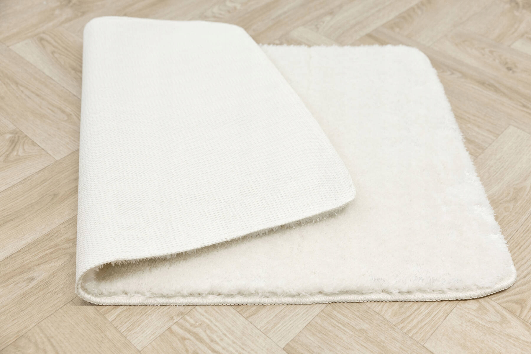 коврик для ванной комнаты Malmo с мягким и приятным на ощупь, пушистая, полиэфирная руна мохнатого типа в блестящем белом и не -сластике.