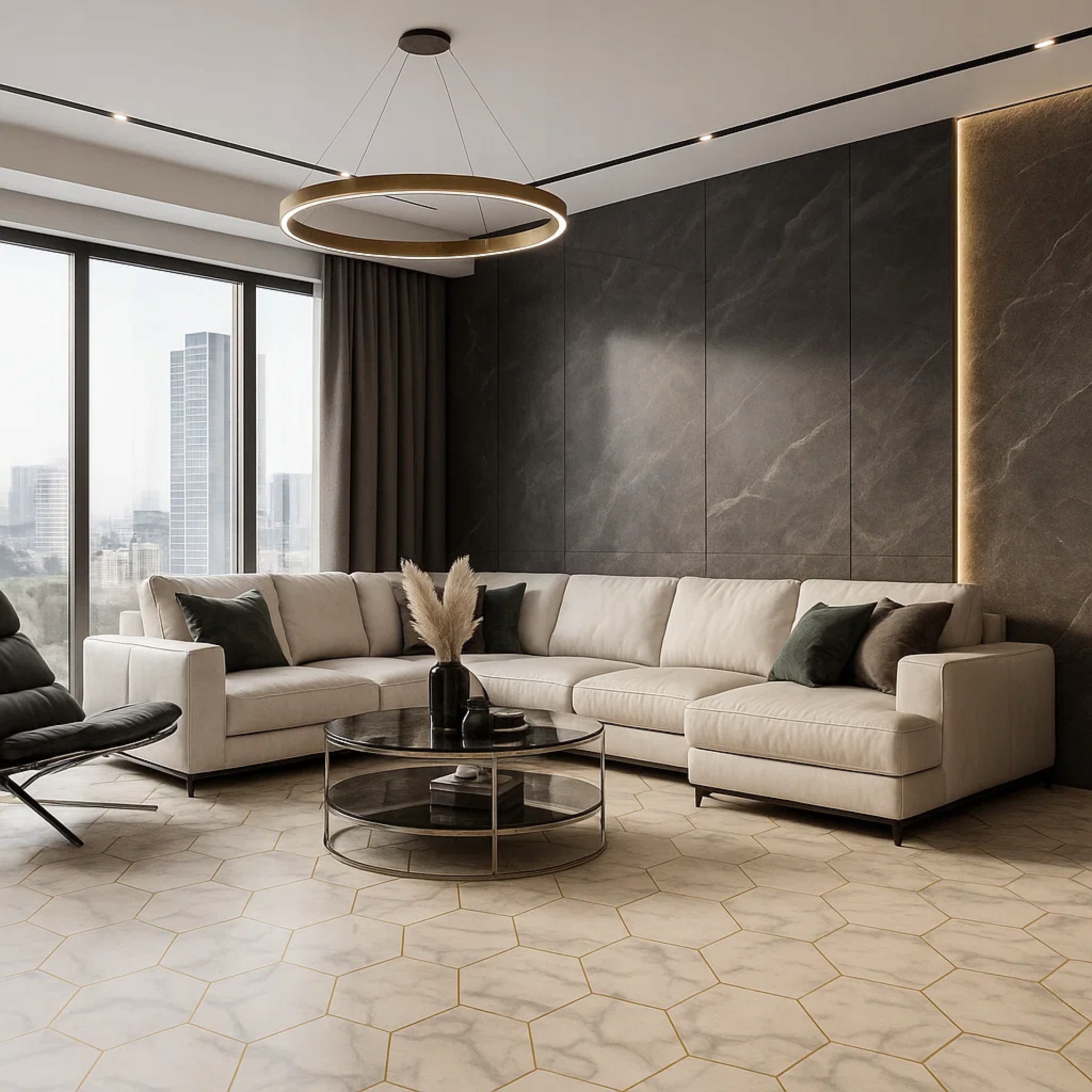 - Современный, элегантный дизайн - мрамор шестиугольники с золотыми вставками.