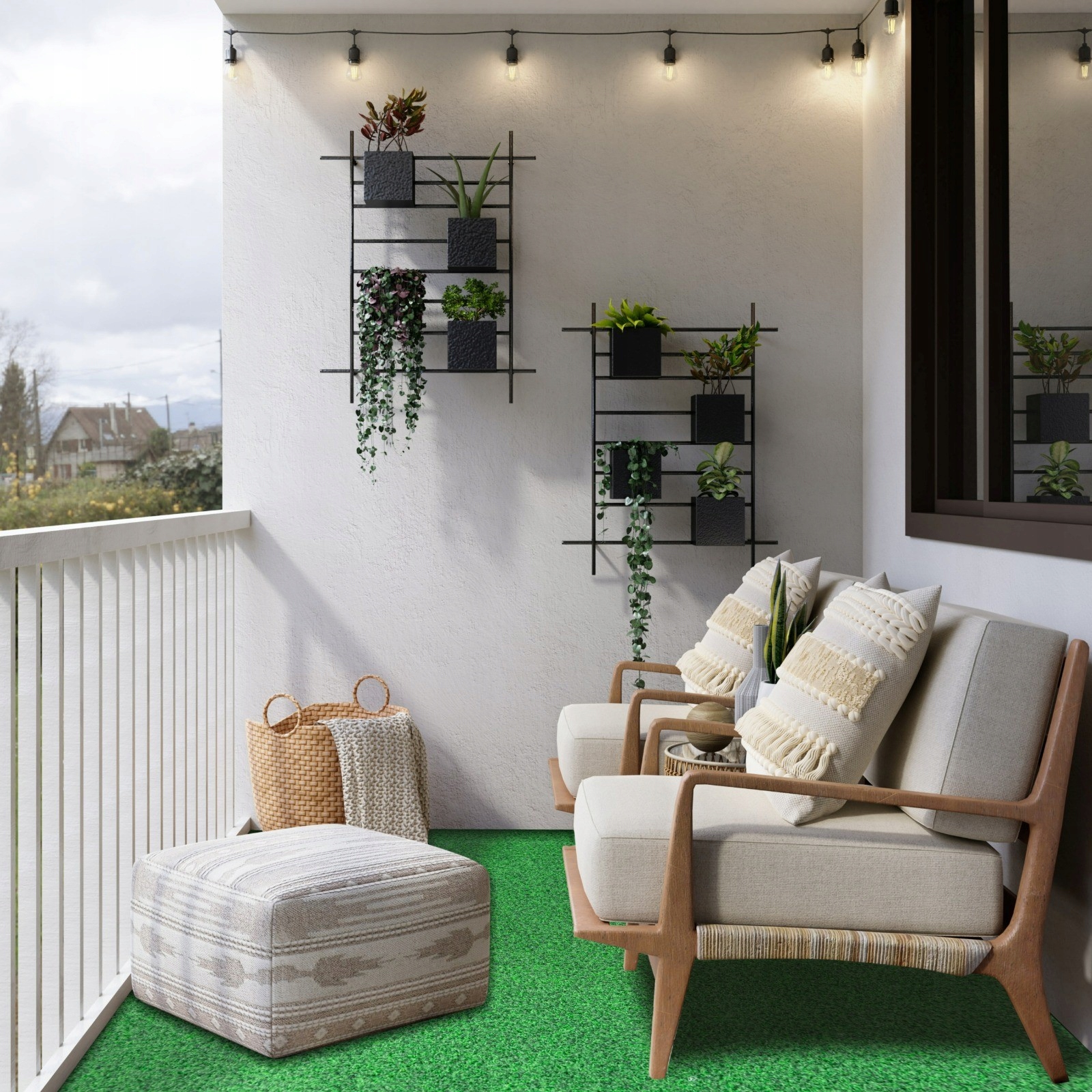 Помните, что при установке травы на открытом воздухе защитите ее от сильных порывов ветра, добавив соответствующий груз, например, садовую мебель, или используя соединительную ленту по краям травы.