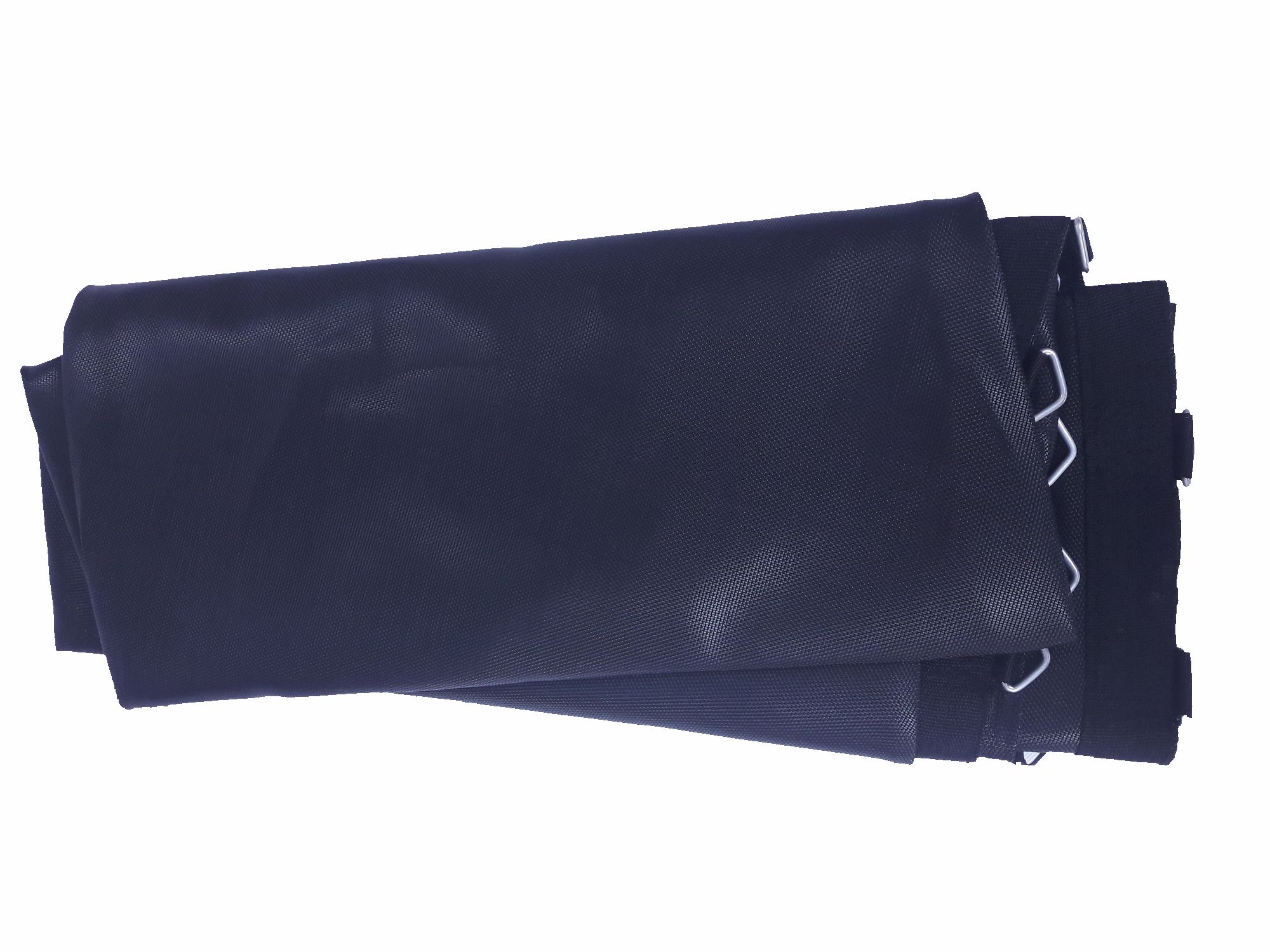 Диаметр коврика около 398 см. Коврик изготовлен из полипропиленовой ткани, производимой по лицензии в США (вес 280 г/м2), устойчивой к сложным погодным условиям и солнечному излучению. Спустя 10 лет он черный как новый. Сделано эстетично и идеально. Множество швов, усиленных лентой. Сила: 150 кг. Если пружины 17 – 19 см (с крючками), коврик точно подойдет. ПРИМЕЧАНИЕ. Установите новый коврик, устанавливая сначала каждую четвертую пружину. Затем заполняем остальное.