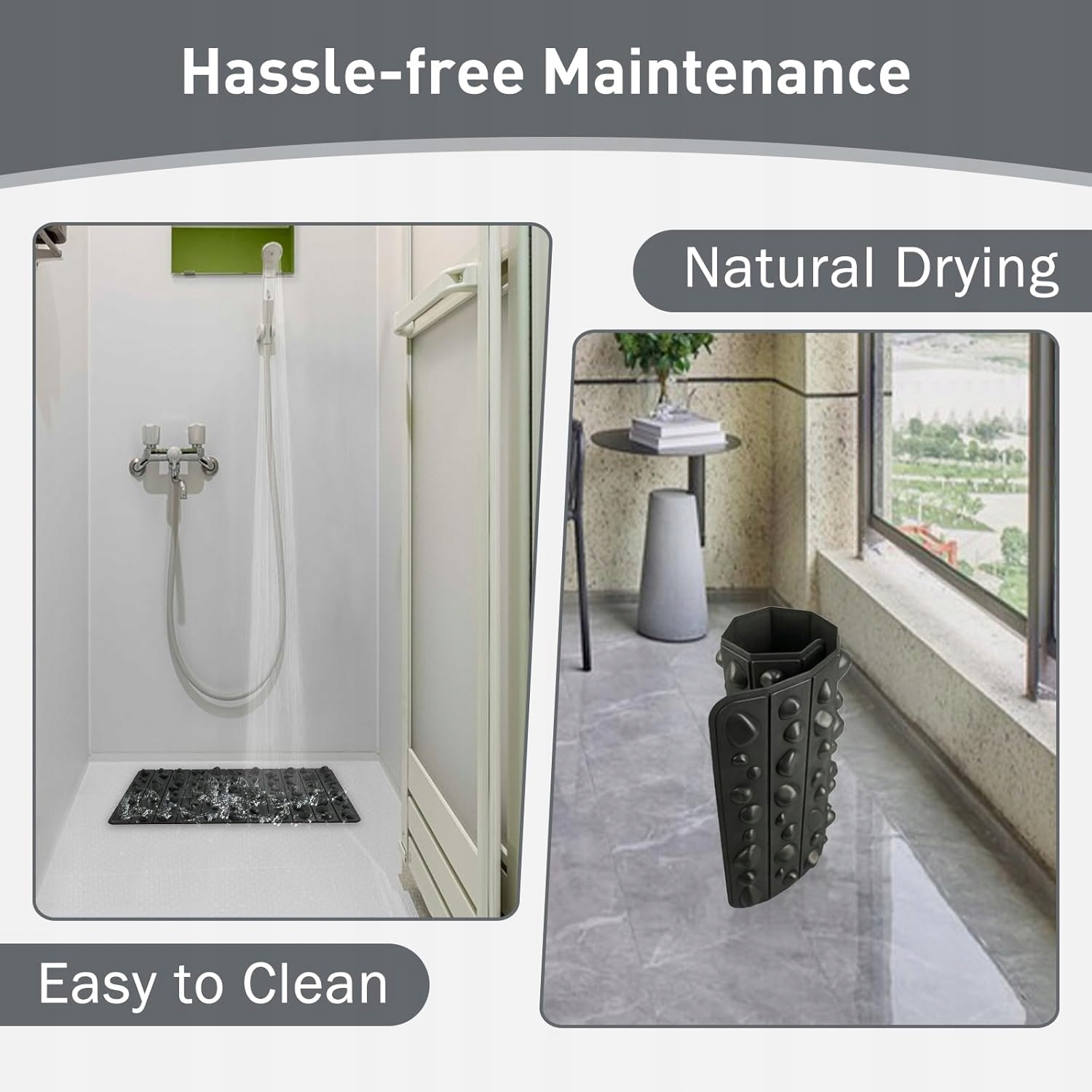 Этот удобный коврик сложен, очень легкий и прост в переносе. Независимо от того, находитесь ли вы в офисе, дома или на кухне, вы можете наслаждаться массажем ног в любое время и везде. Этот не -скользящий коврик может быть использован даже при плавании в душе.